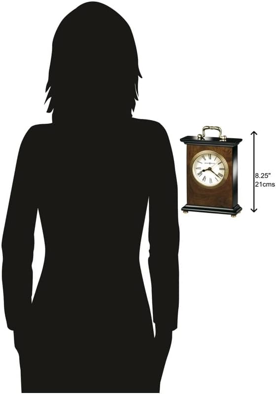 Howard Miller Berkley Table Clock - Roman Numerals Walnut Wood Finish Desk Clock- Vintage Mantel Clock with Brass Handle - Silent Quartz Movement Desk Clocks for Home, Office, Bedroom, Living Room