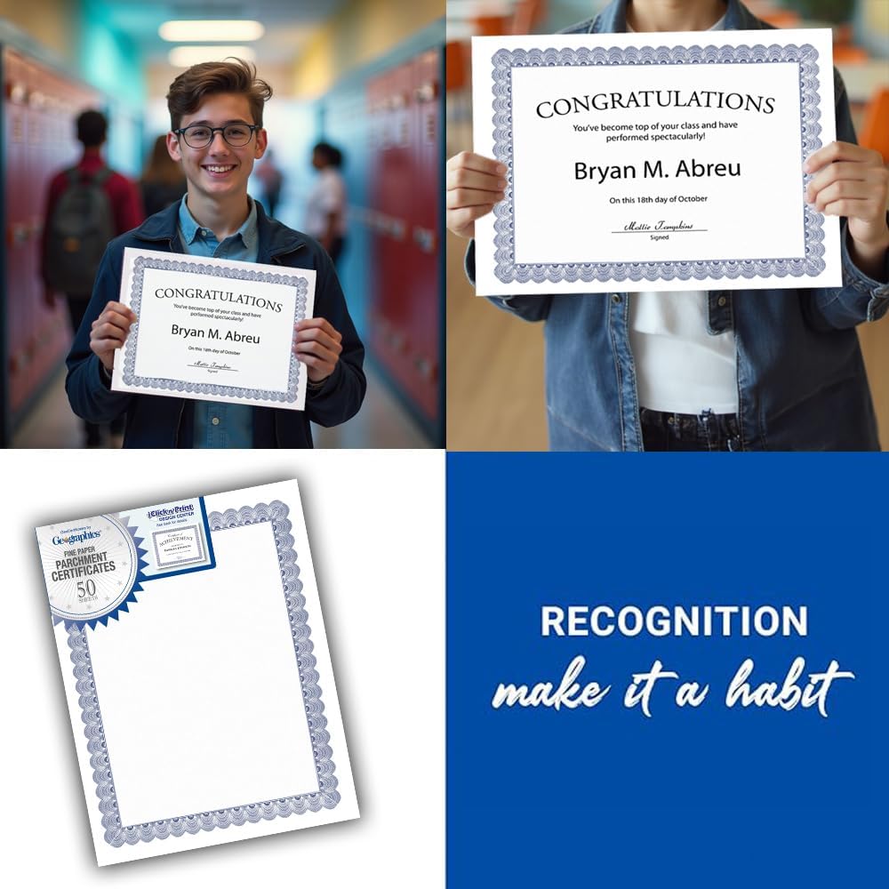 - VERSATILE & MULTI-PURPOSE: Ideal for awards, diplomas, achievements, and special recognitions, this certificate paper is perfect for schools, businesses, organizations, and personal celebrations. It’s a great way to commemorate milestones and express appreciation for accomplishments.