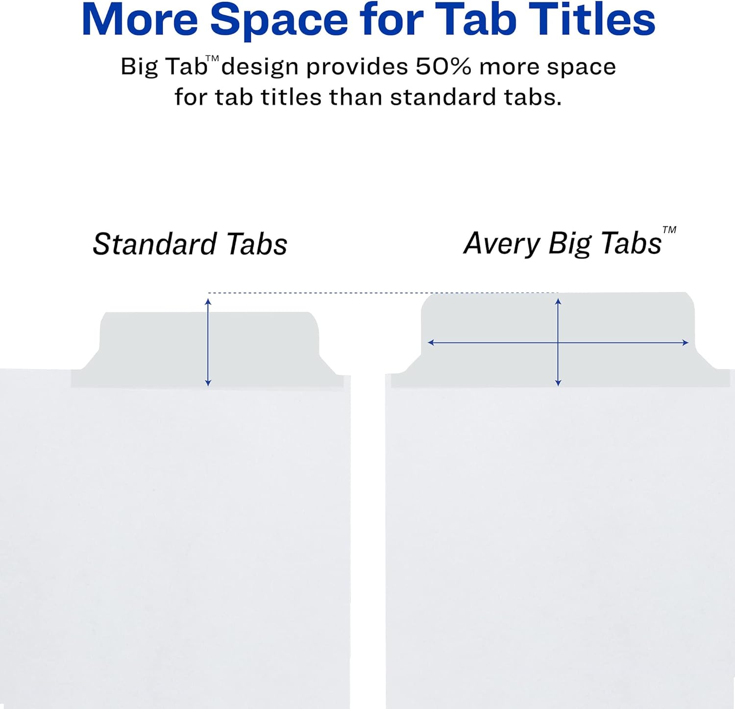 - Display 50% more information with the wider Big Tab insertable tab design than with standard divider tabs