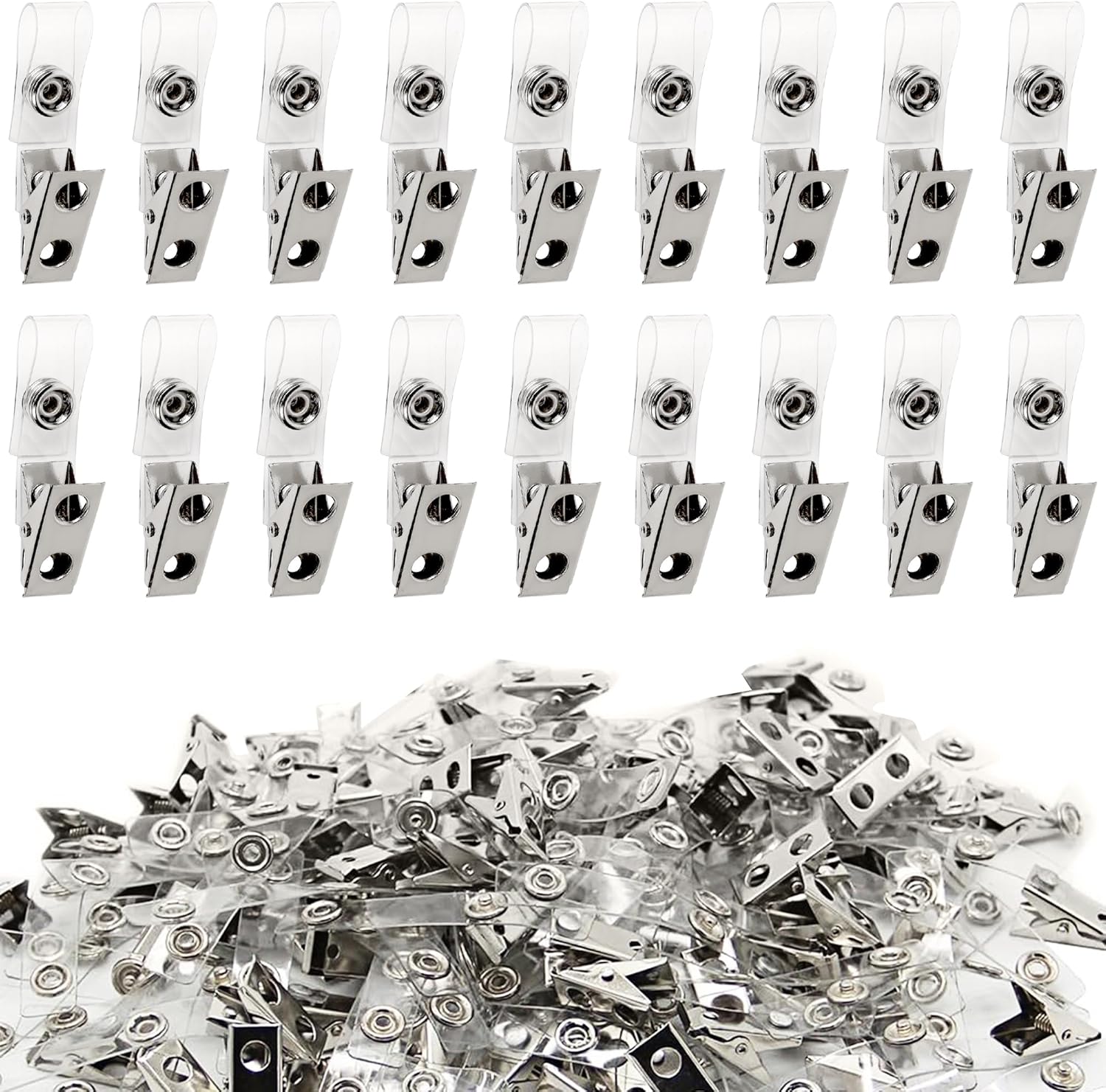 Happy Trees 100pc Metal Badge Clips with Strap Clear ID Strap Clip Adapter