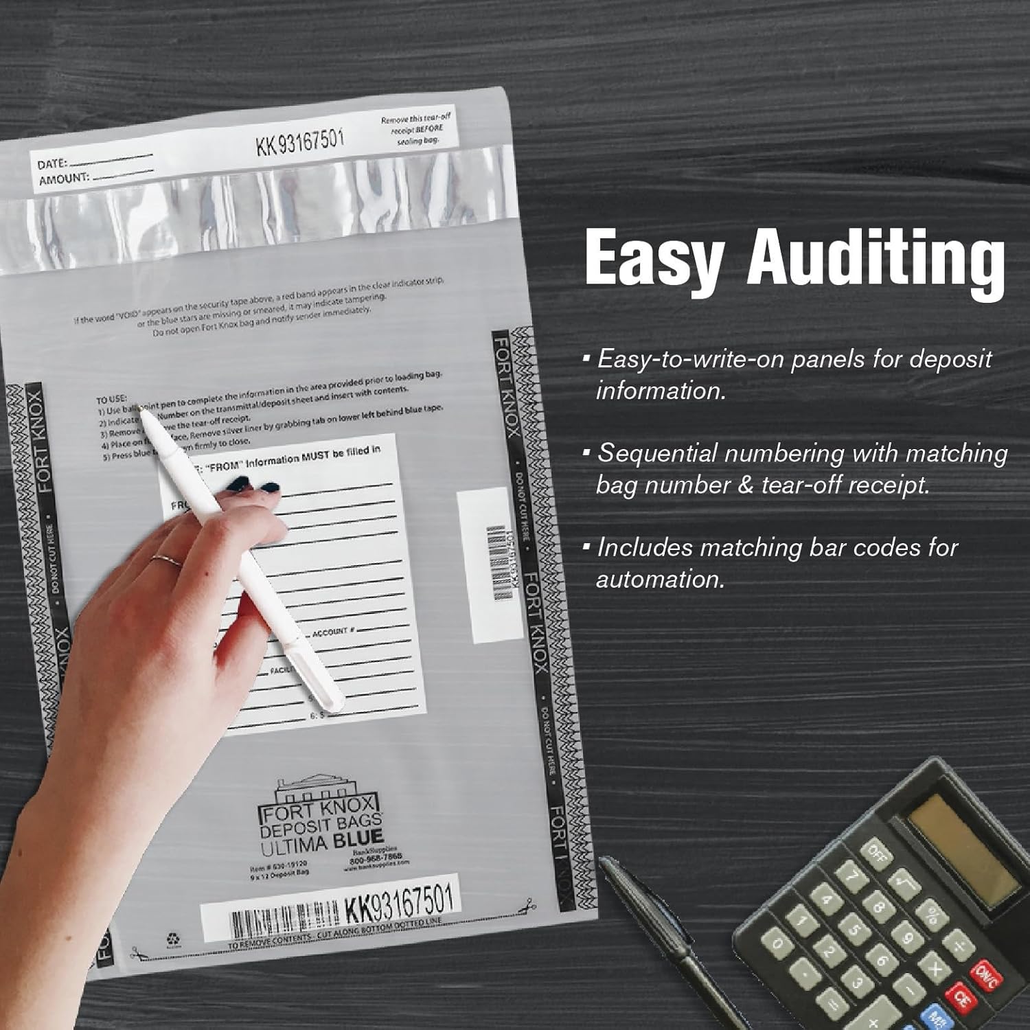 - CLEAR DEPOSIT BAG: Ultima Blue is the ultimate security bag with features that are so advanced that its virtually impossible to hide tampering or unauthorized entry. Simply stuff the bank drop bag and drop it in the night deposit box.