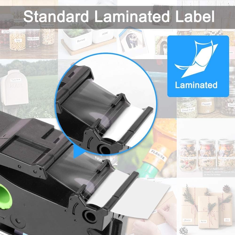 - Width: 1/2 inch (12mm 0.47 inch). Length for each tape: 8m . 6 Colors in one set: Black on White, Black on Clear, Black on Red, Black on Blue, Black on Yellow, Black on Green (Compatible TZe231/TZe131/TZe431/TZe531/TZe631/TZe731)