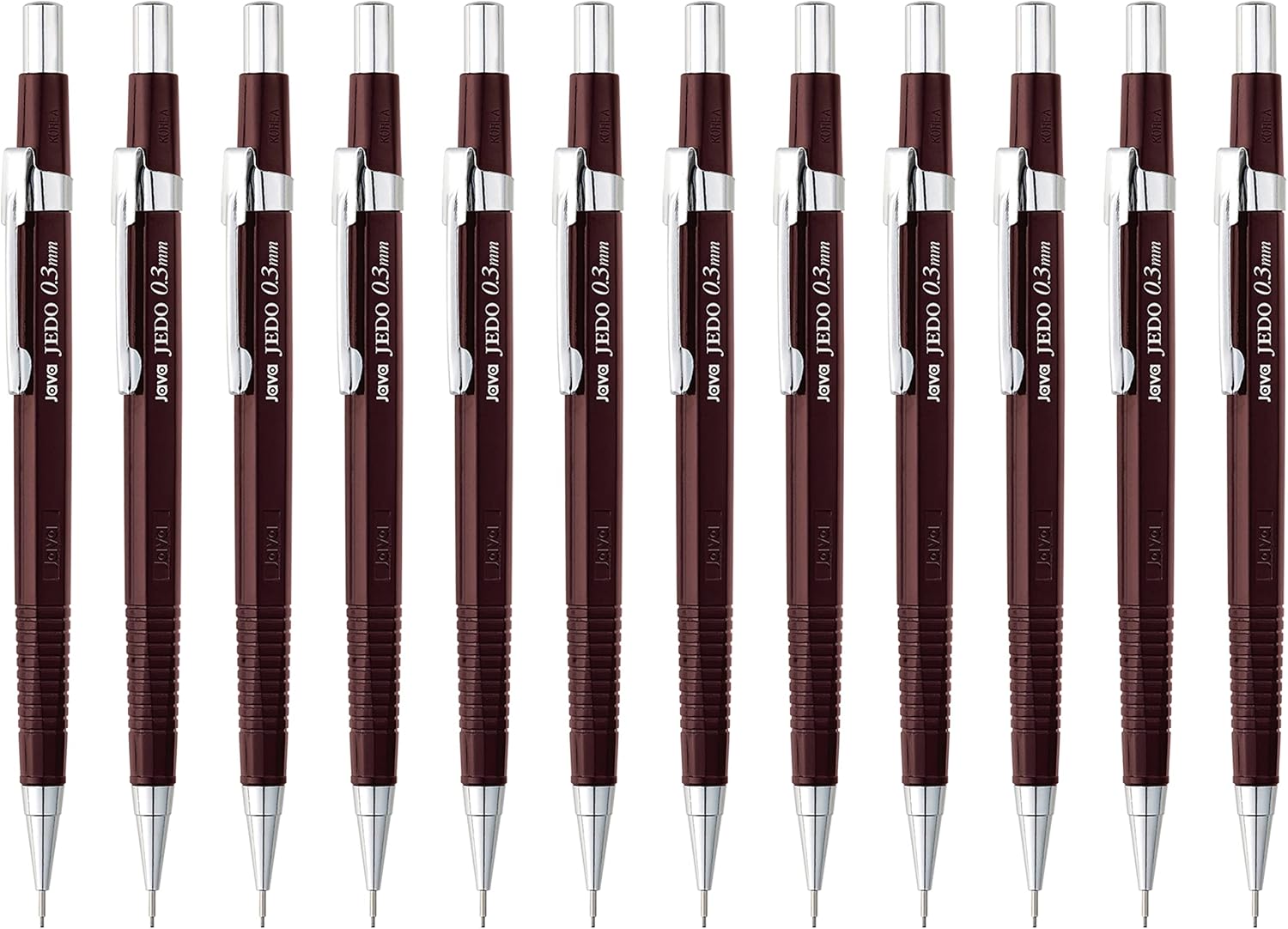 JAVAPEN 0.3 mm Mechanical Drafting Pencil – 12-Pack, Precision Needle Tip, Hex Anti-Roll Barrel, Smooth Metal-Clutch Mechanism