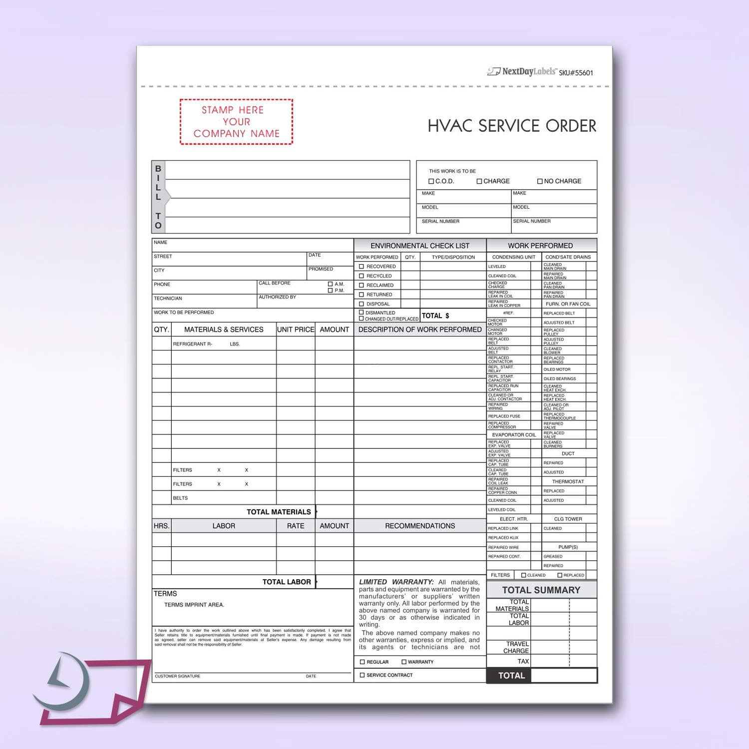 HVAC Service Order Invoice & Repair Detail Form, 3 Part Forms Carbonless (No Company Name Printed) 100 Sets