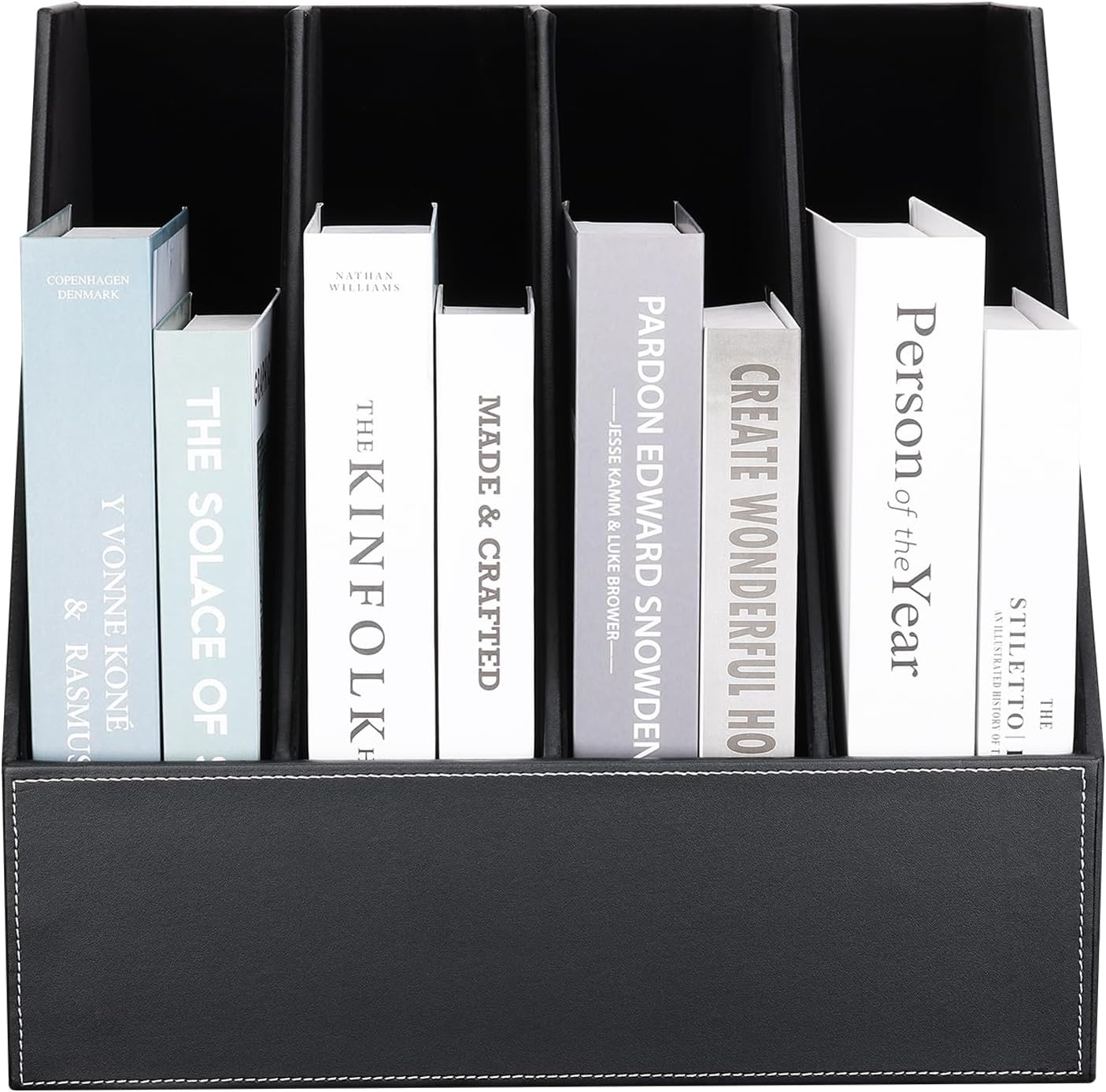 KINGFOM 4-Slot Wood Leather Document Files Holder Rack Stand Desk Files Organizer Papers Collection Cabinet (4 slot Black)