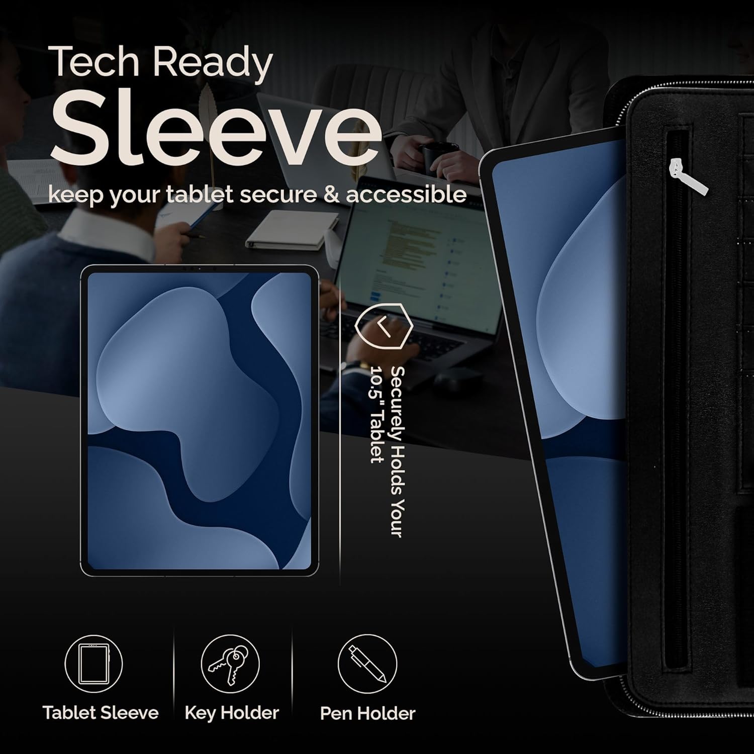 - CLASSICALLY MODERN: Classic-looking leather portfolio for men & women which holds the modern business professional's tablet (up to 10.5") safely in a separate padded sleeve.