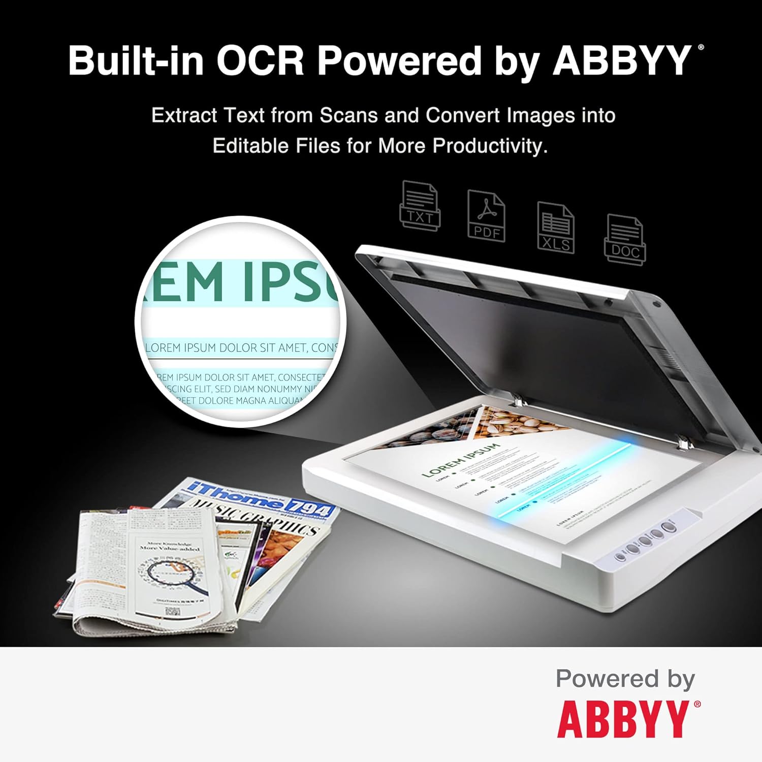 - Powerful software bundle - Enhanced OCR Accuracy with ABBYY, and DocAction for File Sharing