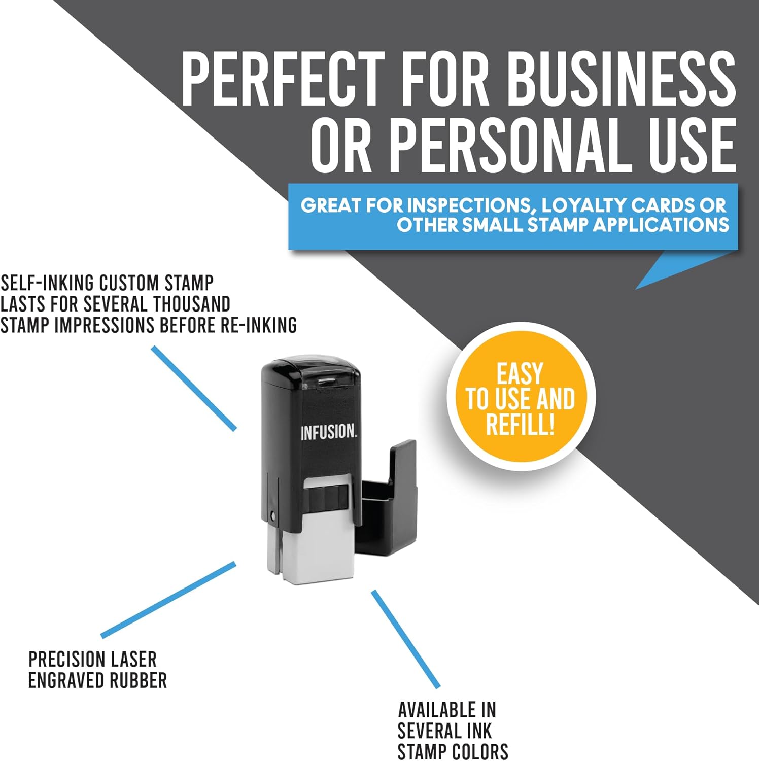 Infusion Self-Inking Custom Rubber Stamp (1/2" x 1/2") - Personalized Stamp for Office, Business, and Home Use - Customizable Text - Choose from 16 Colors