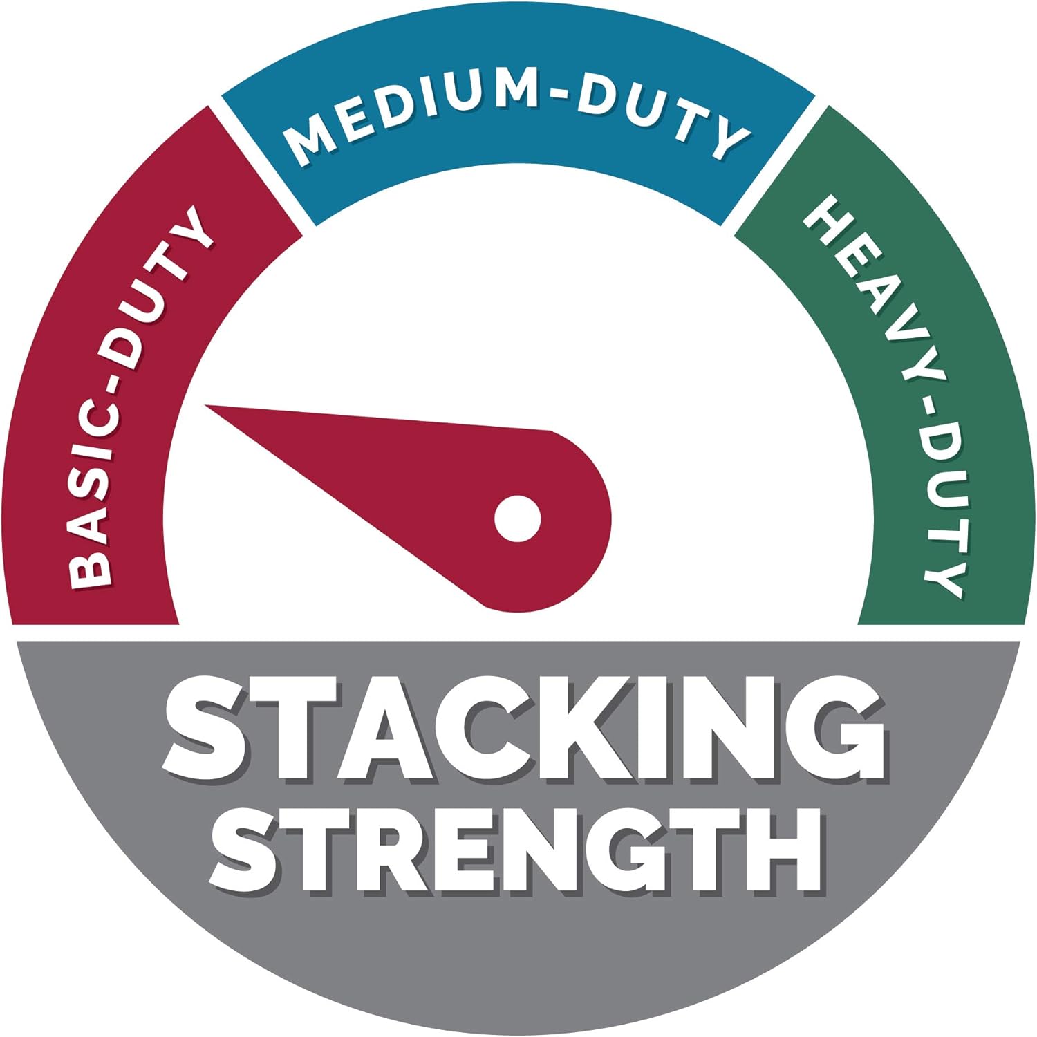 - Basic-duty, standard set-up construction for moderate stacking or use with shelving
