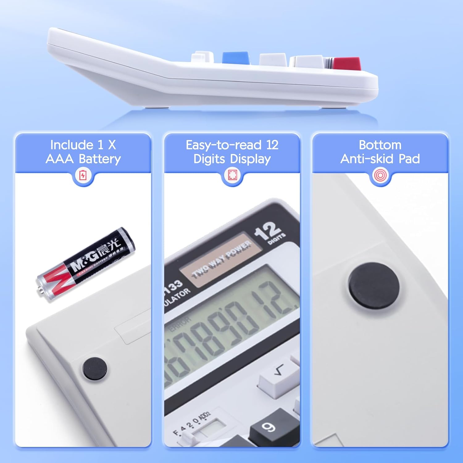 M&G Desk Calculator 12 Digit Extra Large LCD Display, Dual Solar Power and Battery, Accounting Calculator with Big Button, Battery Include, Perfect for Office Business Home Daily Use