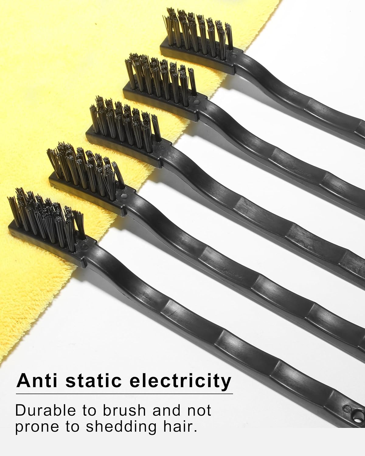 3 x 0.5cm Three Row Plastic Handle Anti Static Brushes Black 5 Pcs