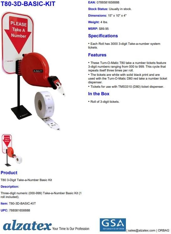 - The tickets are white with solid black print and are used with the Turn-O-Matic D80 red take a number ticket dispenser.
