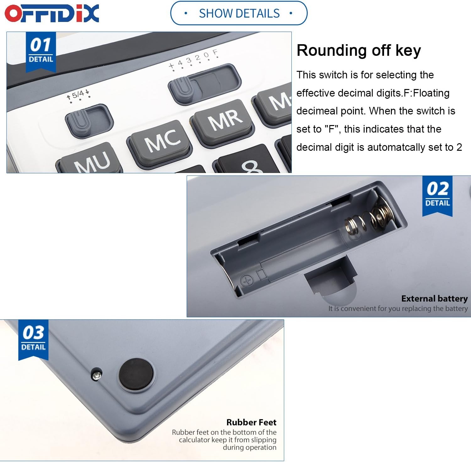 OFFIDIX Large Key Dual Power Electronic Calculator, Portable 12 Digit Large LCD Display Desk Calculator for Daily and Basic Office