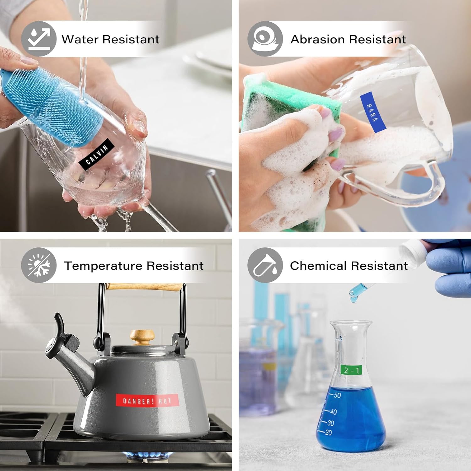 - Durable Pastic embossing labels for a 3D effect.