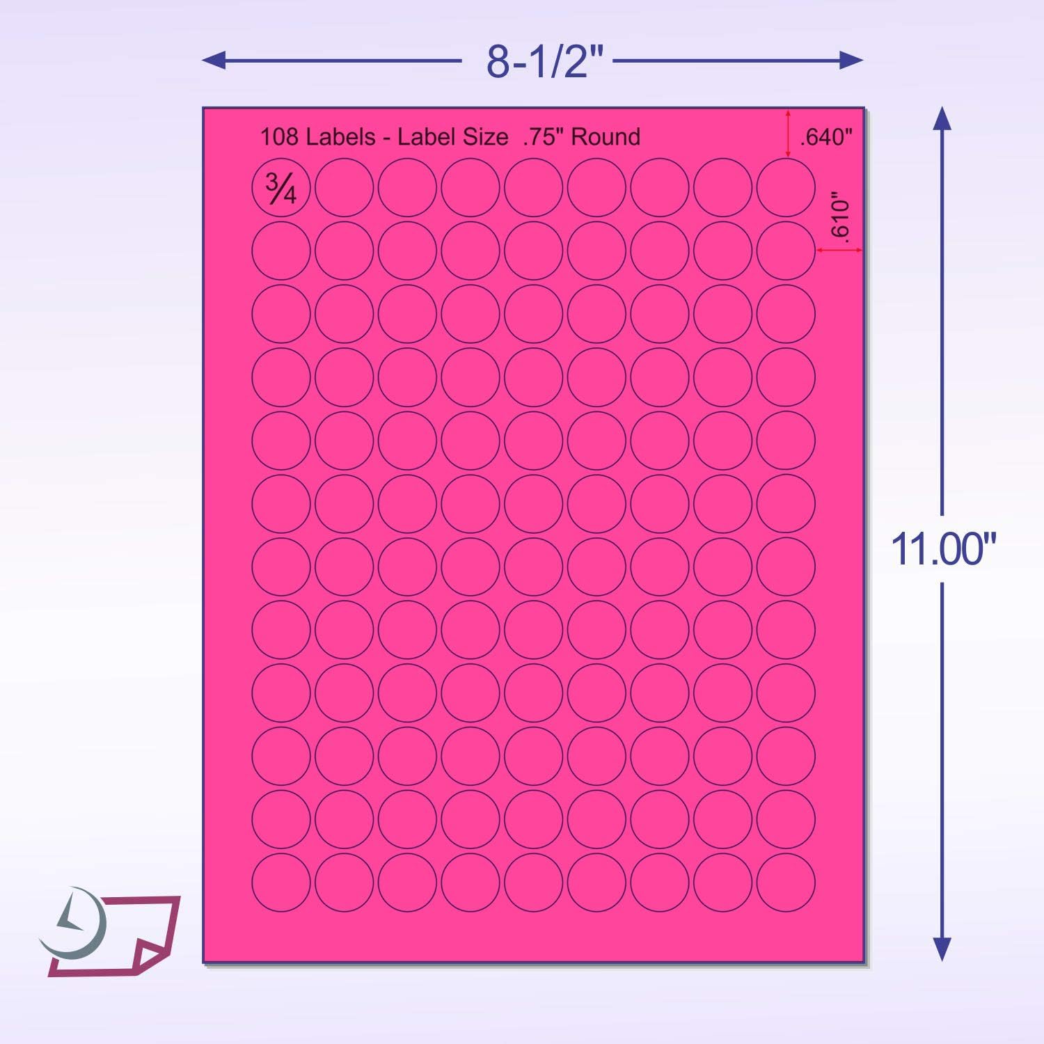 8-1/2 x 11" Neon Color High Light Fluorescent Labels for Laser & Inkjet Printer (Pink Fluorescent, 3/4" Round - 108 Per Page | 2700 Labels)