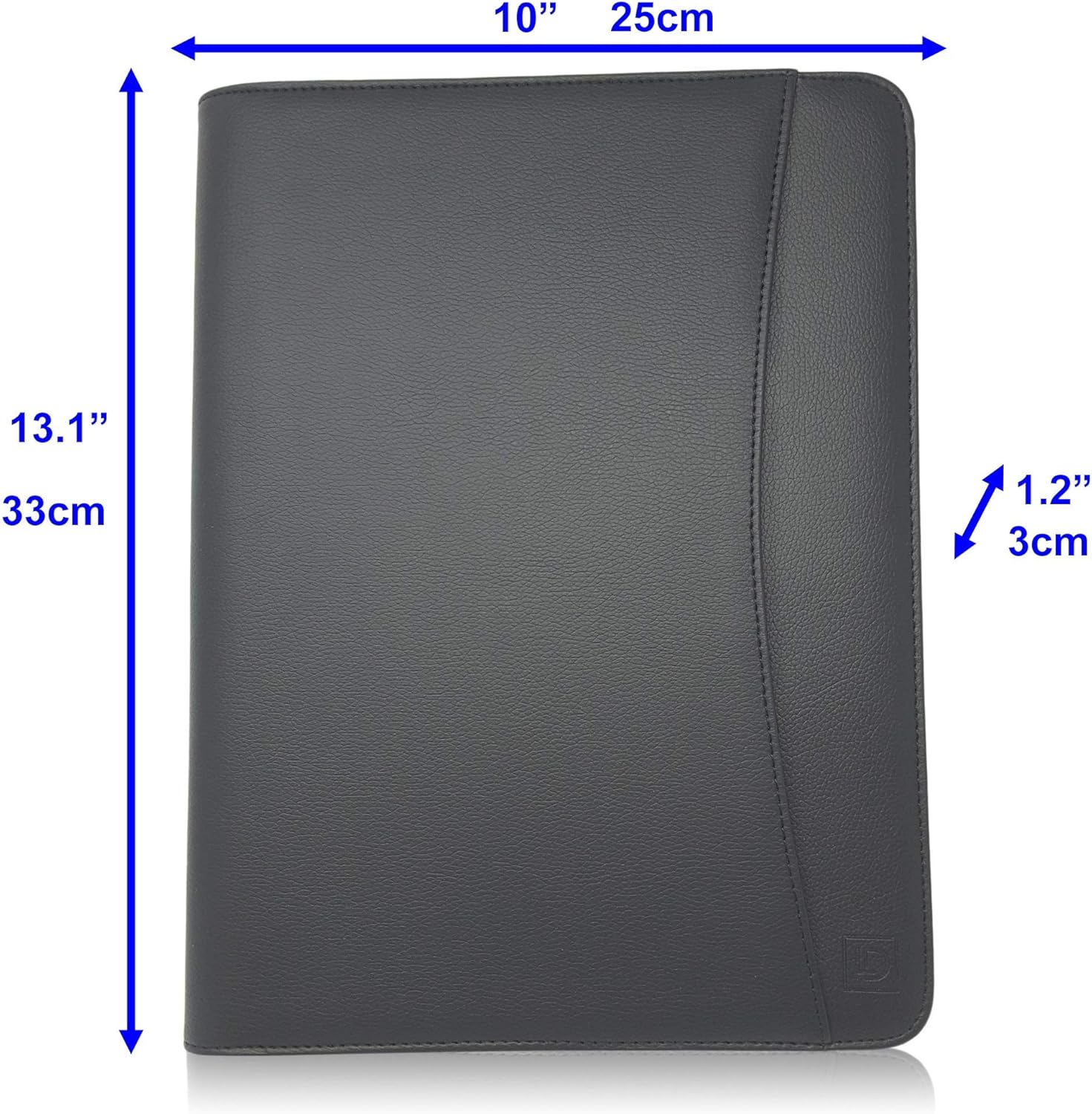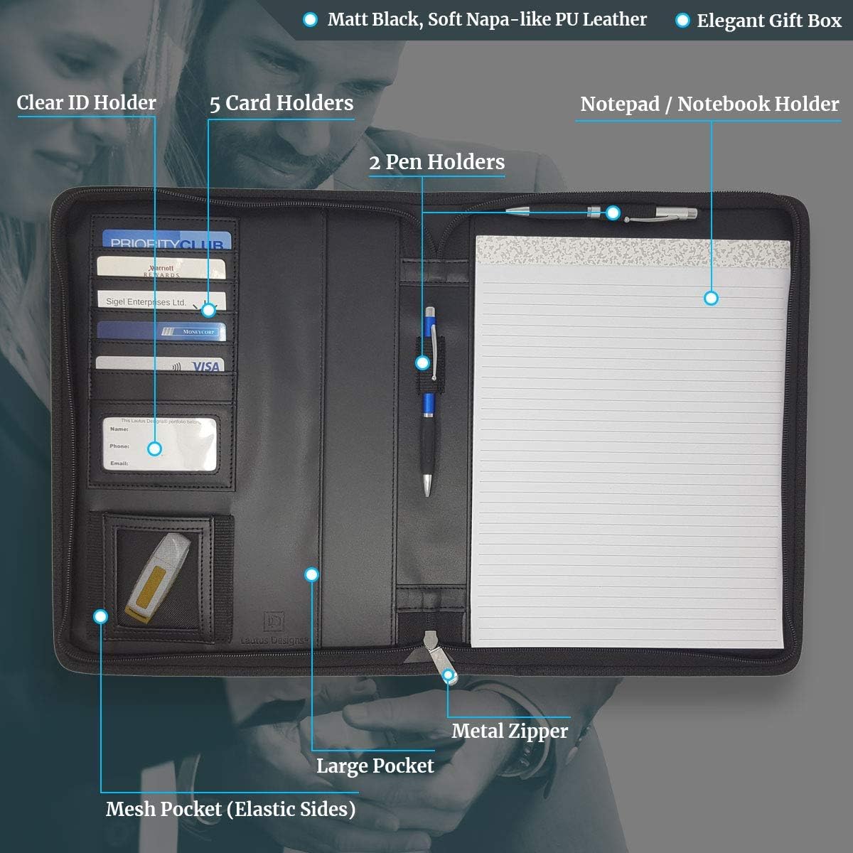 - VERSATILE: The zippered padfolio holds any US Letter (8.5 x 11") notepad or notebook that opens to the left or up & 2 pens safely in the wraparound zippered closure.