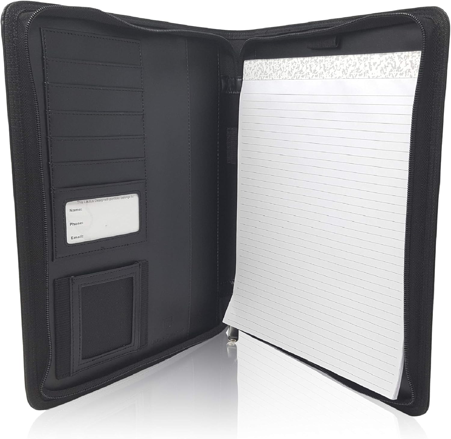 Matt Black Zippered Portfolio Binder - Lean PU Leather Business Executive Portfolio Organizer Folder - Padfolio for Men & Women with US Letter Notepad & Gift Box by Lautus Designs