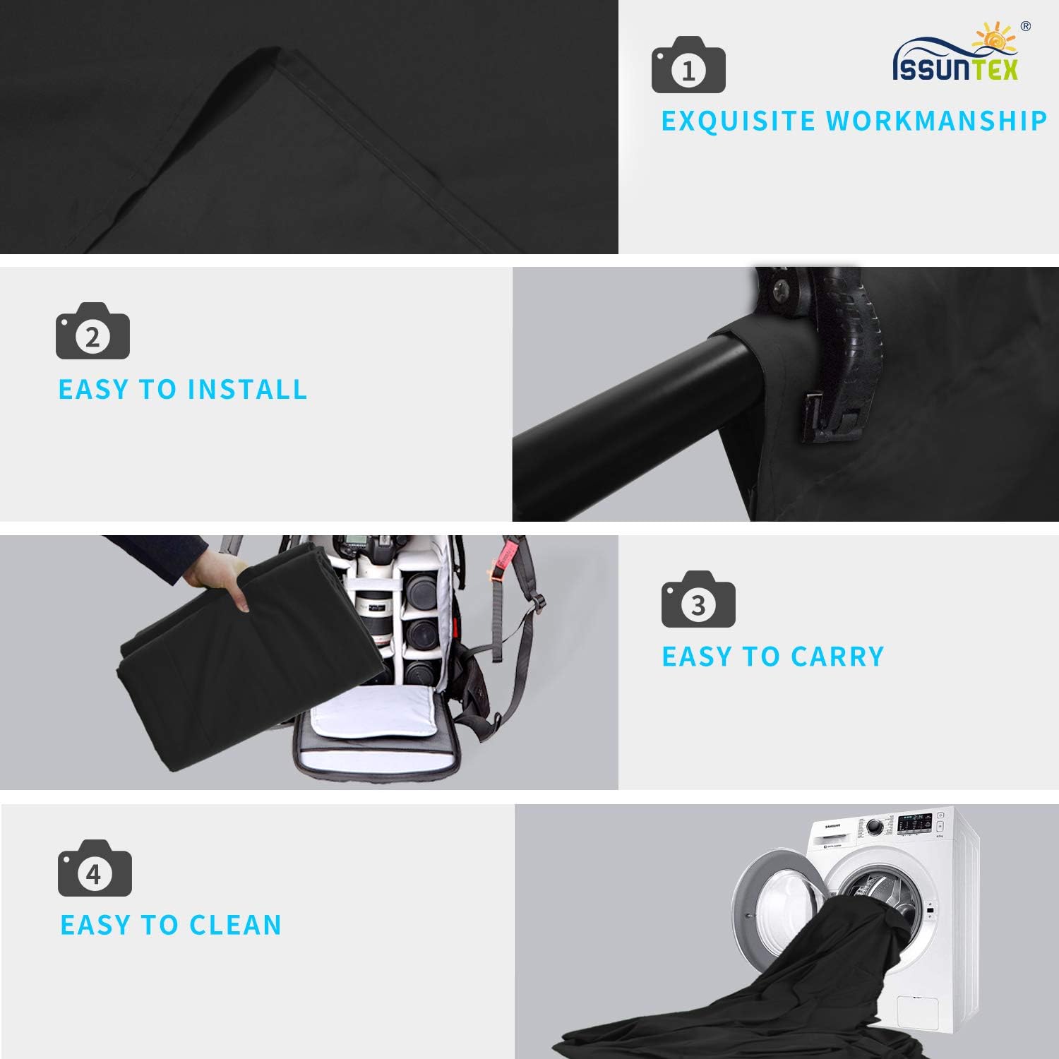 ISSUNTEX 9X15 ft Background Polester Backdrop, Photo Studio, Collapsible High Density Screen for Video Photography and Television-Black