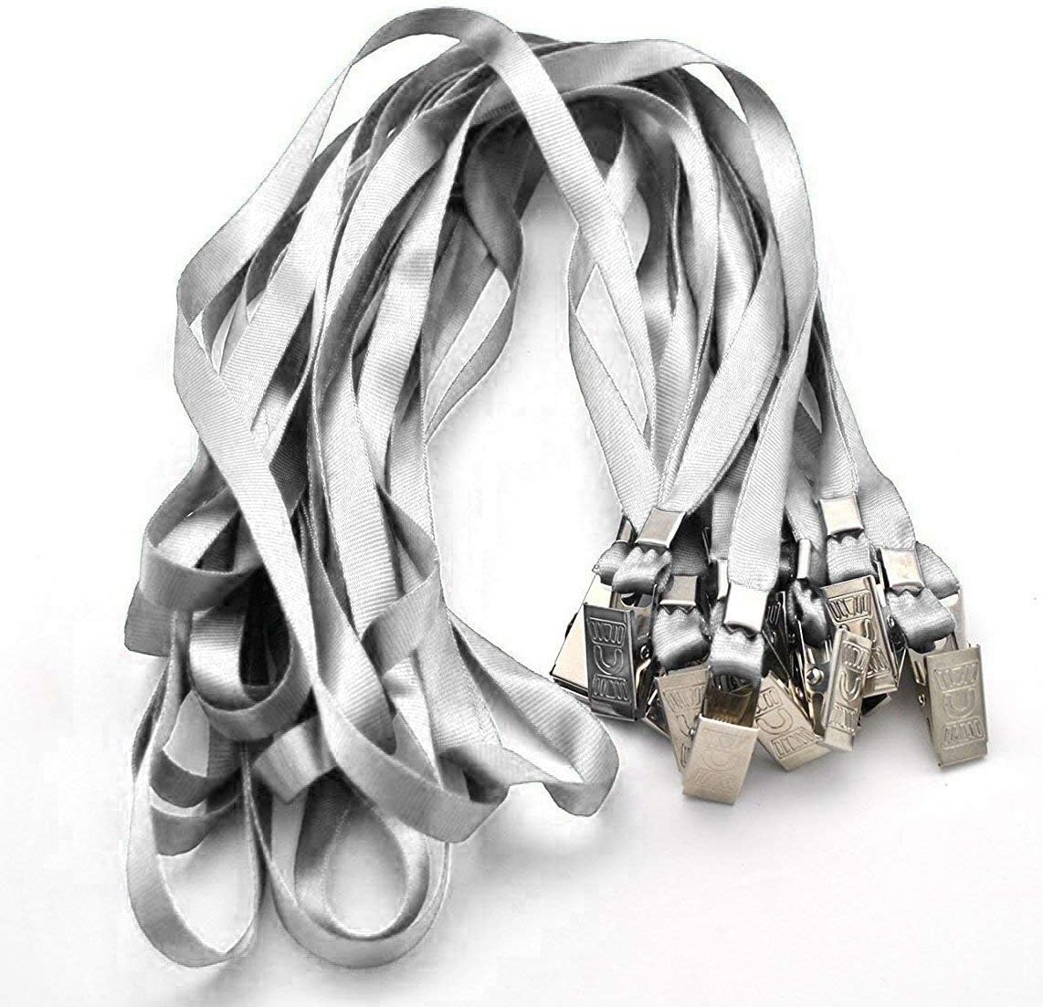 Beebel Gray Lanyards 100 Pack Nylon Flat Badge Lanyard for Id Badge Name Tag (Gray, 100 Pack)