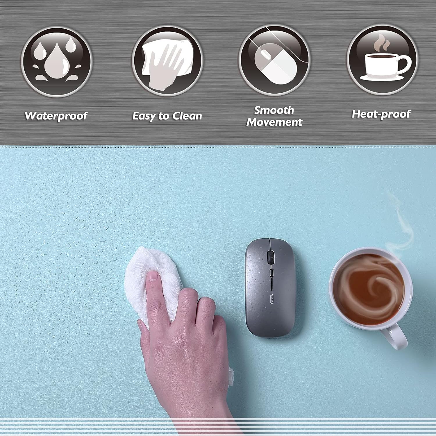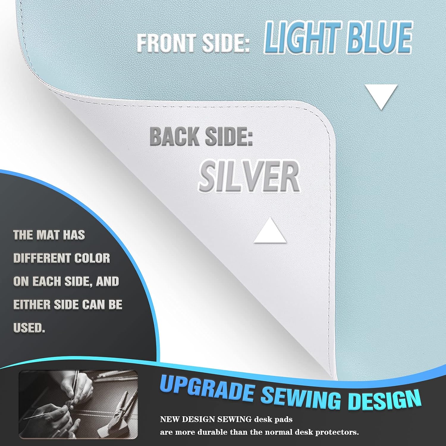 K KNODEL Desk Mat, Blotter, Dual-Sided Office Desk Pad, Waterproof Desk Mat for Desktop, Desk Blotters, PVC Leather Pad Protector (Light Blue, 35.4" x 17")