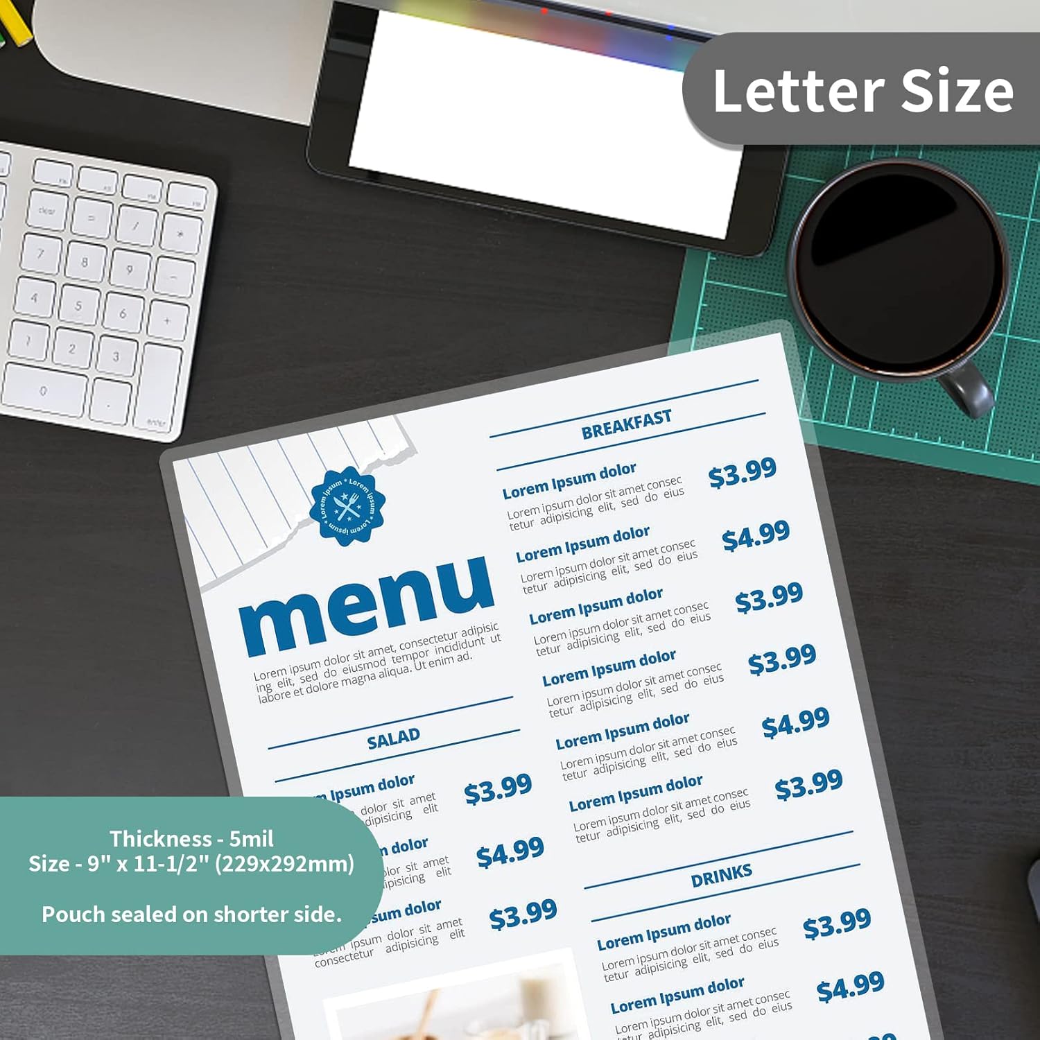 - 【Package Includes】100 Thermal Laminating Pouches per pack. Thickness - 5 mil, Size - 8.9 x 11.4 Inch.