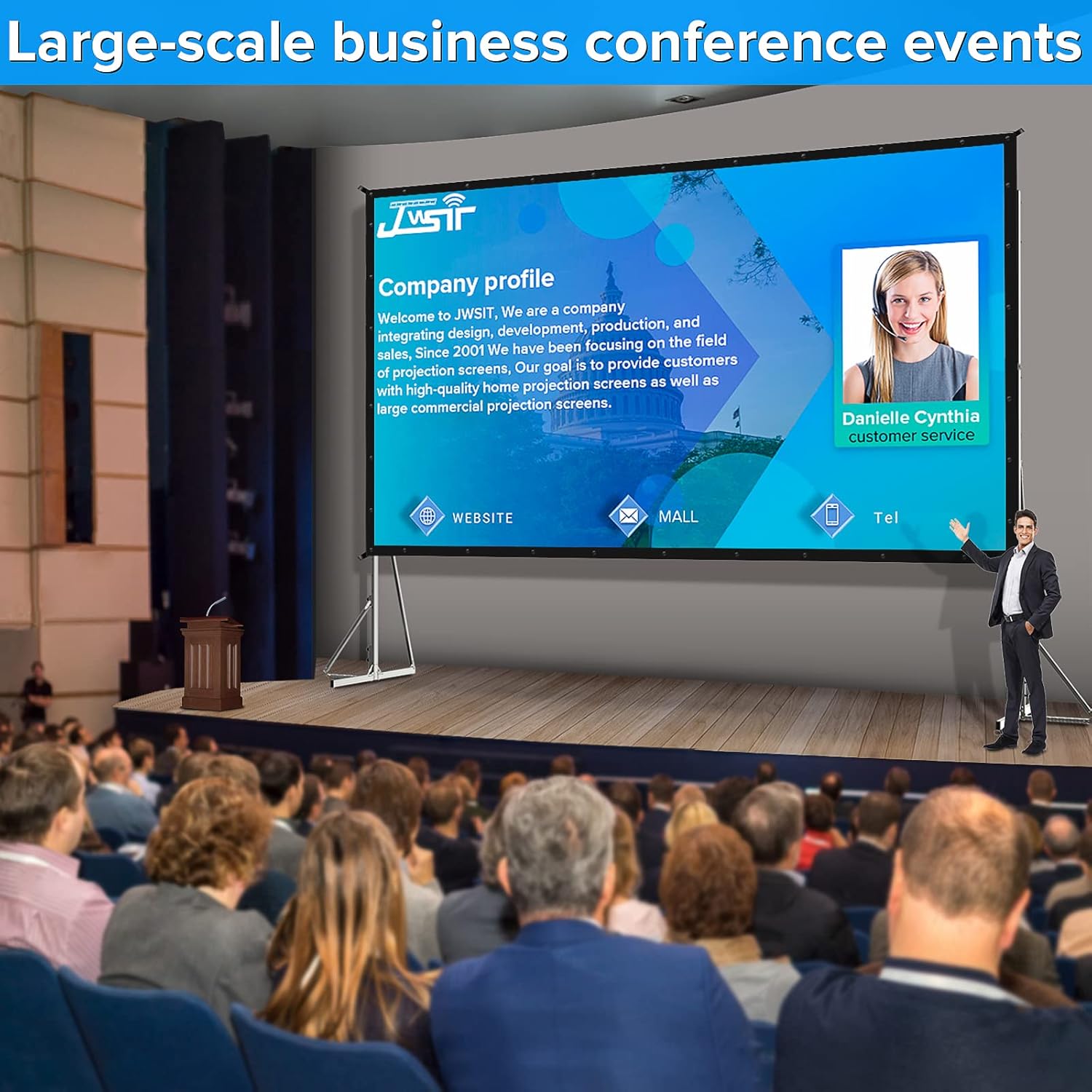 - ▶【Easy to Set Up】- JWSIT 250-inch front projector screen with stand is ready for quick set-up. Just press the metal snaps around the frame to quickly fasten the 4k projection screen to the one-piece frame, detachable legs can be assembled easily with no tools required. The fast folding design makes it perfect as an Outdoor/Indoor portable projector screen
