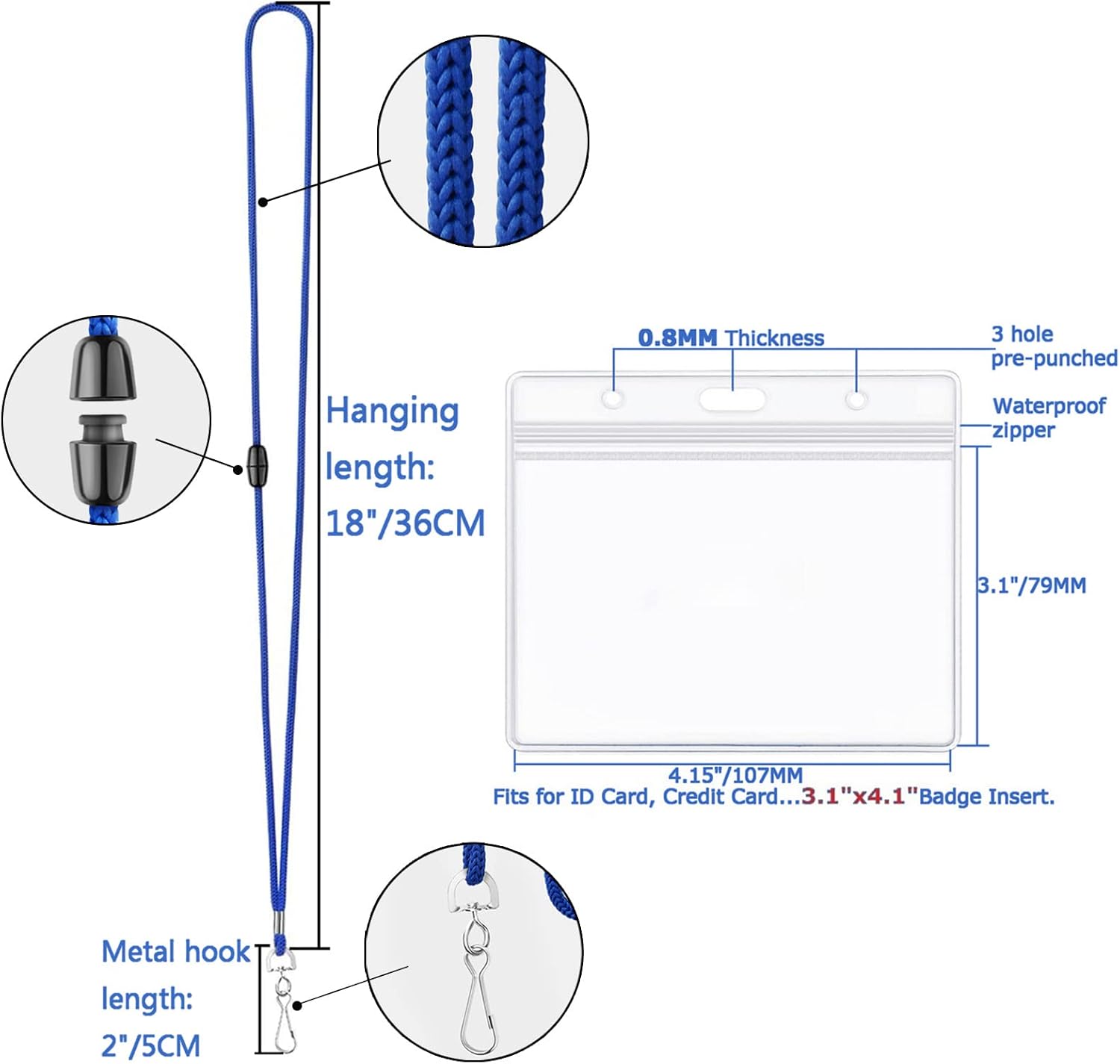 - Thickened & Waterproof Badge Holder with Safety Lanyard: For the 4x3" horizontal name badge holder we have thickened it, about double the thickness of most other plastic business card holders, And made of high quality PVC material with waterproof sealable zipper plastic vinyl pouch is tear-resistant, keeps content safe and secure, clear PVC vinyl makes it easy to scan id cards.