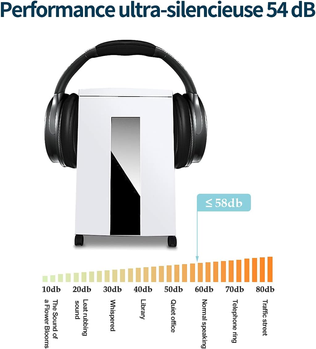 - 【Ultra-Quiet Performance】Low noise level 58dB ultra-quiet performance; 6 gallons pull-out waste bin with large easy viewing transparent window. Perfect for a home paper shredder or a quiet paper shredder for office environments.