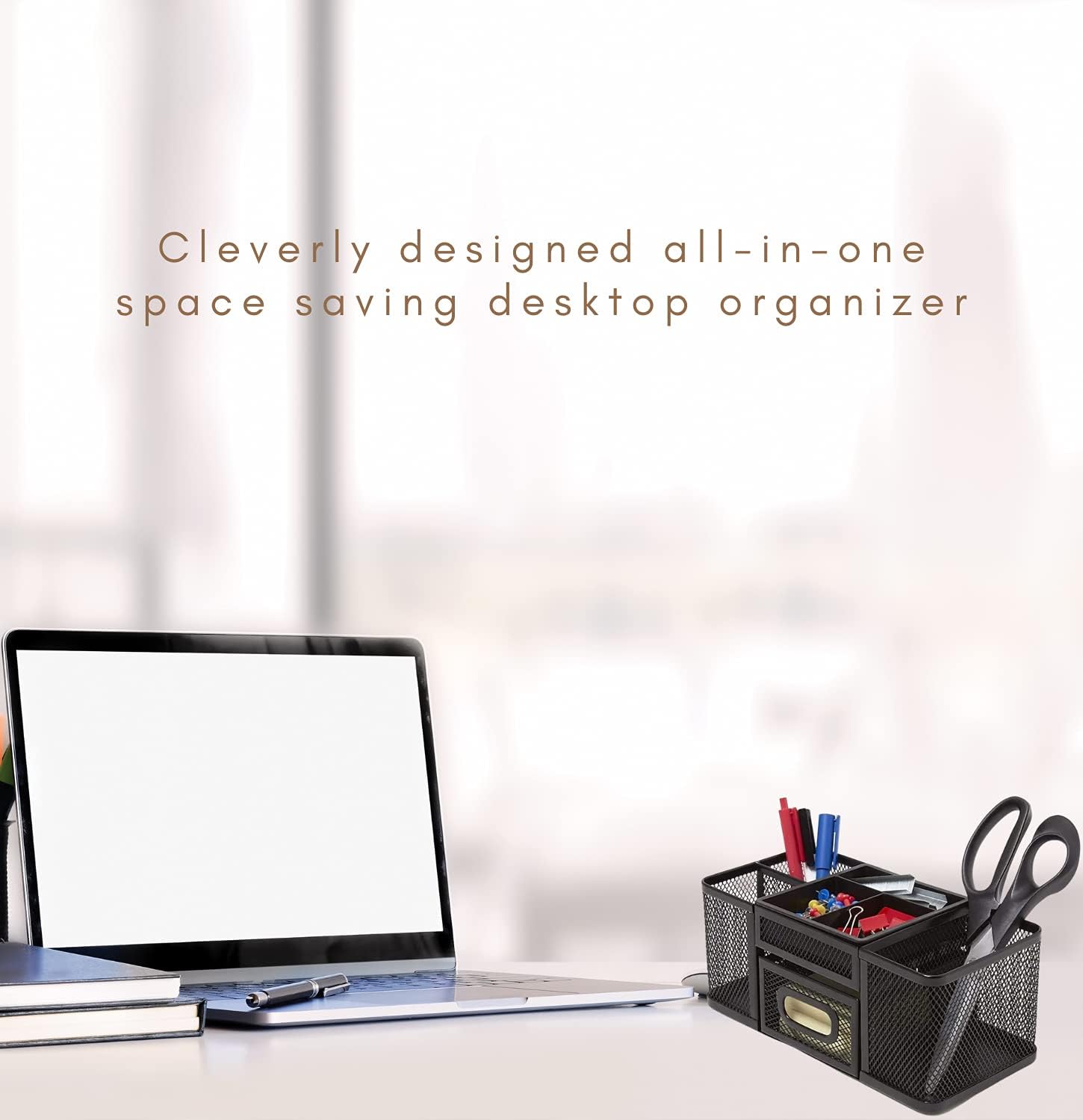 1InTheOffice Desk Supplies Organizer, Desk Caddy 7-Compartment Wire Mesh Accessory Holder, Matte Black