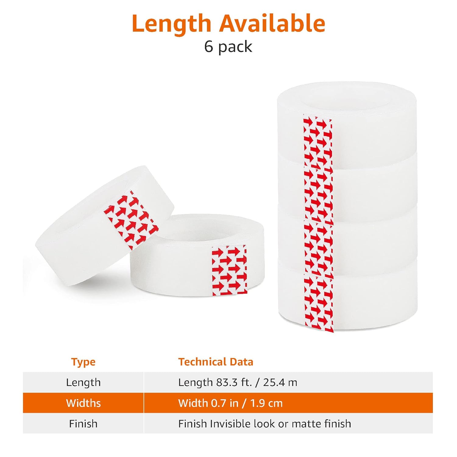 Amazon Basics Matte Finish Tape, 6 Pack, 2.1 x 0.75 inch, Translucent