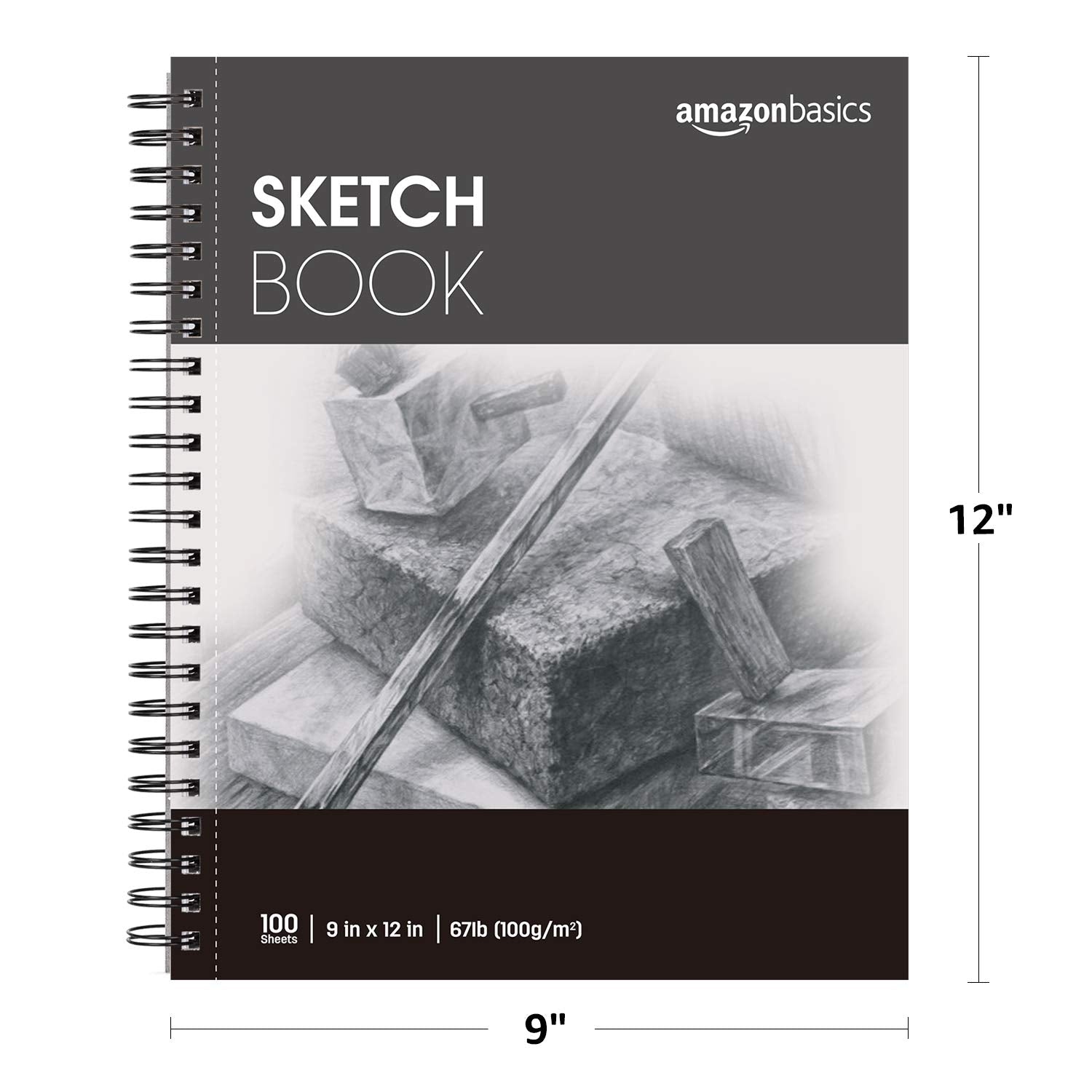 Amazon Basics Sketch Pad for Artists, 67 lb. / 100 gsm, 100 Sheets, 9"x12", White