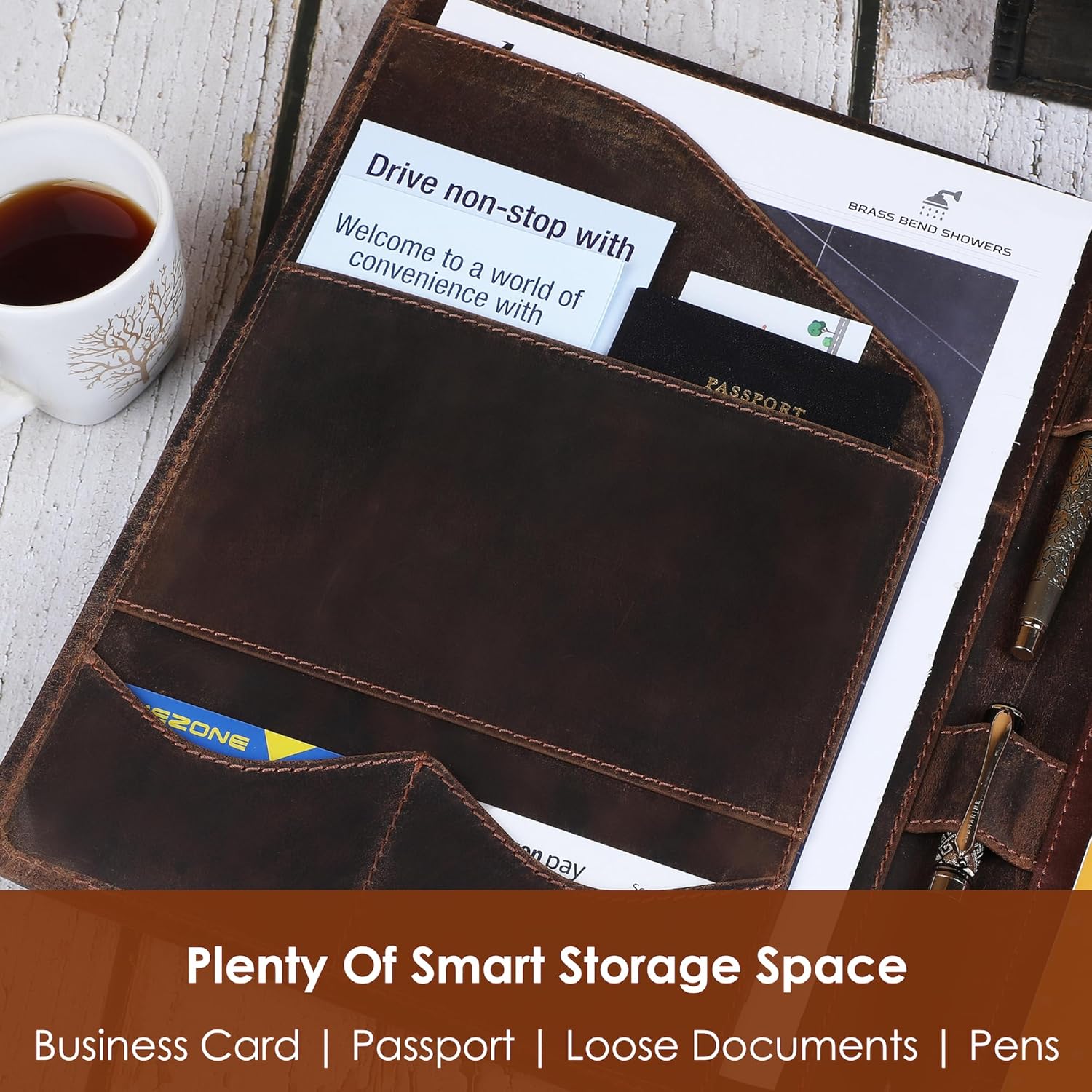 - Premium Full Grain Leather: Crafted from soft, genuine brown buffalo leather, each leather portfolio organizer is handmade, with unique variations in color and texture, ensuring a one-of-a-kind, durable product that ages beautifully.
