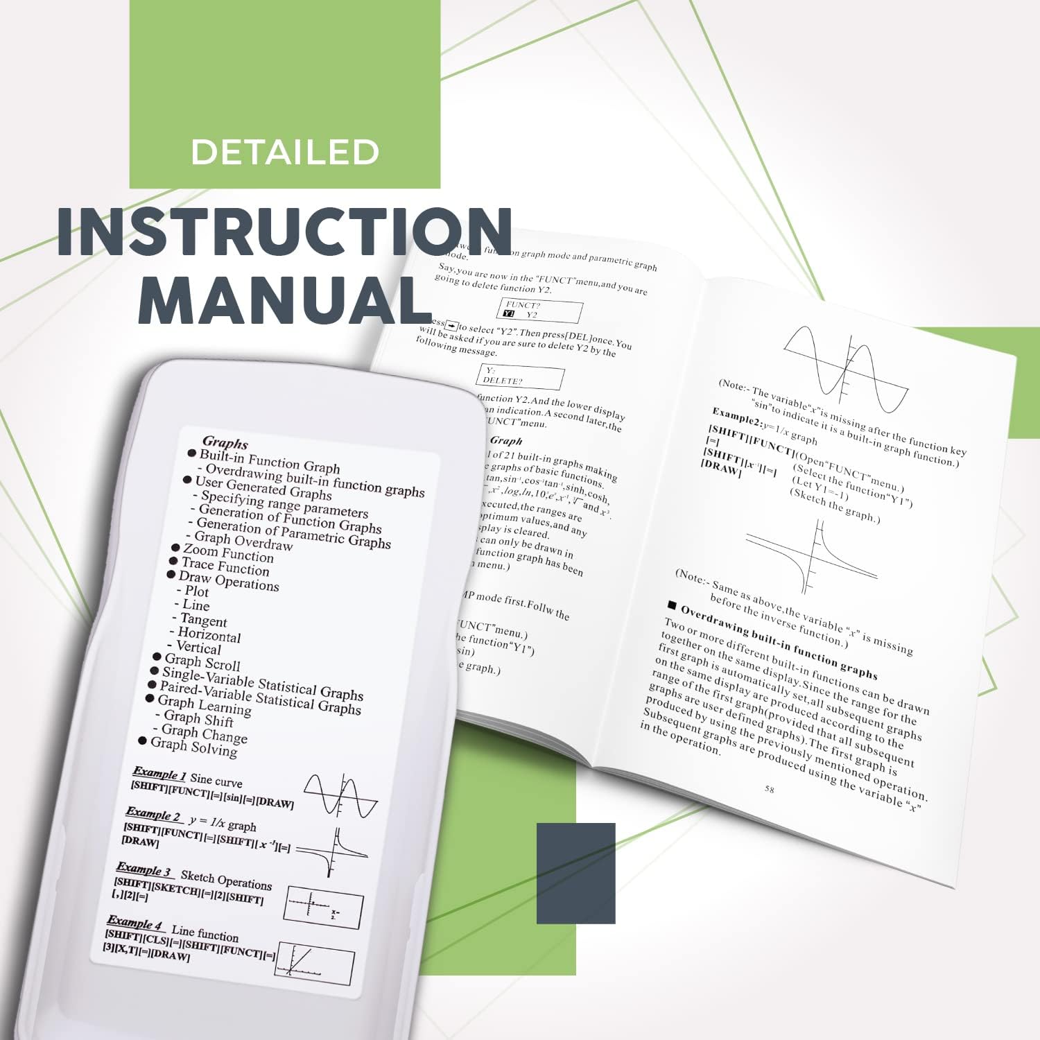 - Scientific calculator with graphic function: this is a scientific calculator that can display diagrams of formulas. It has a screen large enough to display charts and equations at the same time, so you can view calculations and corrections in detail. The size 7 x 3.3 ensures comfortable operation.