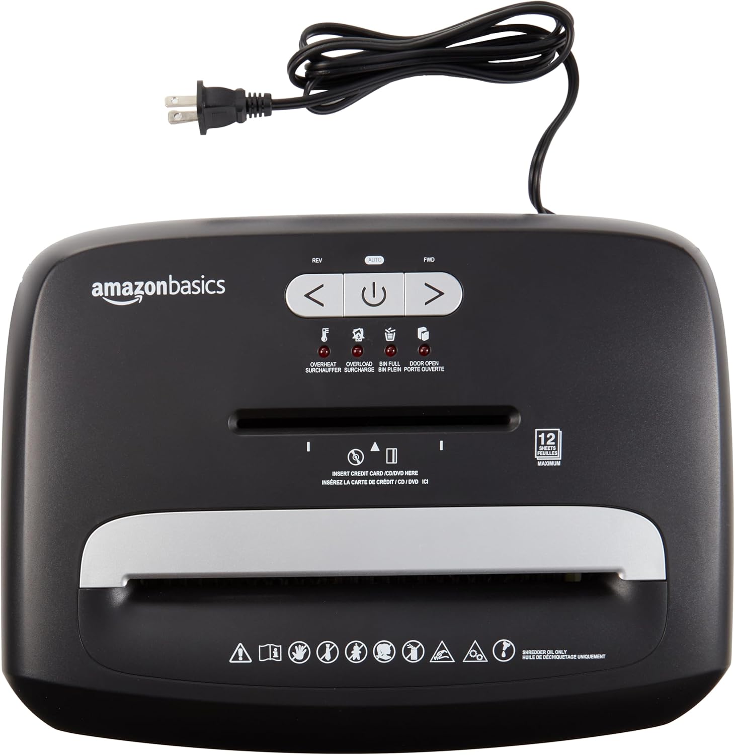 Amazon Basics 12 Sheet (new model) Micro Cut Paper and Credit Card CD Shredder With 6 Gallon Bin, Black