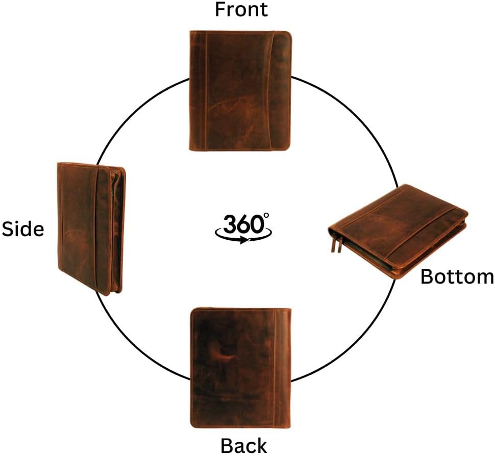 - Ample Storage: Includes a large inside pocket for book/tablet, a zipper pocket, a large sleeve for documents, 4 business card slots, an ID slot, 3 pen holders, a mobile/calculator pocket, a document protector, and a notepad holder.