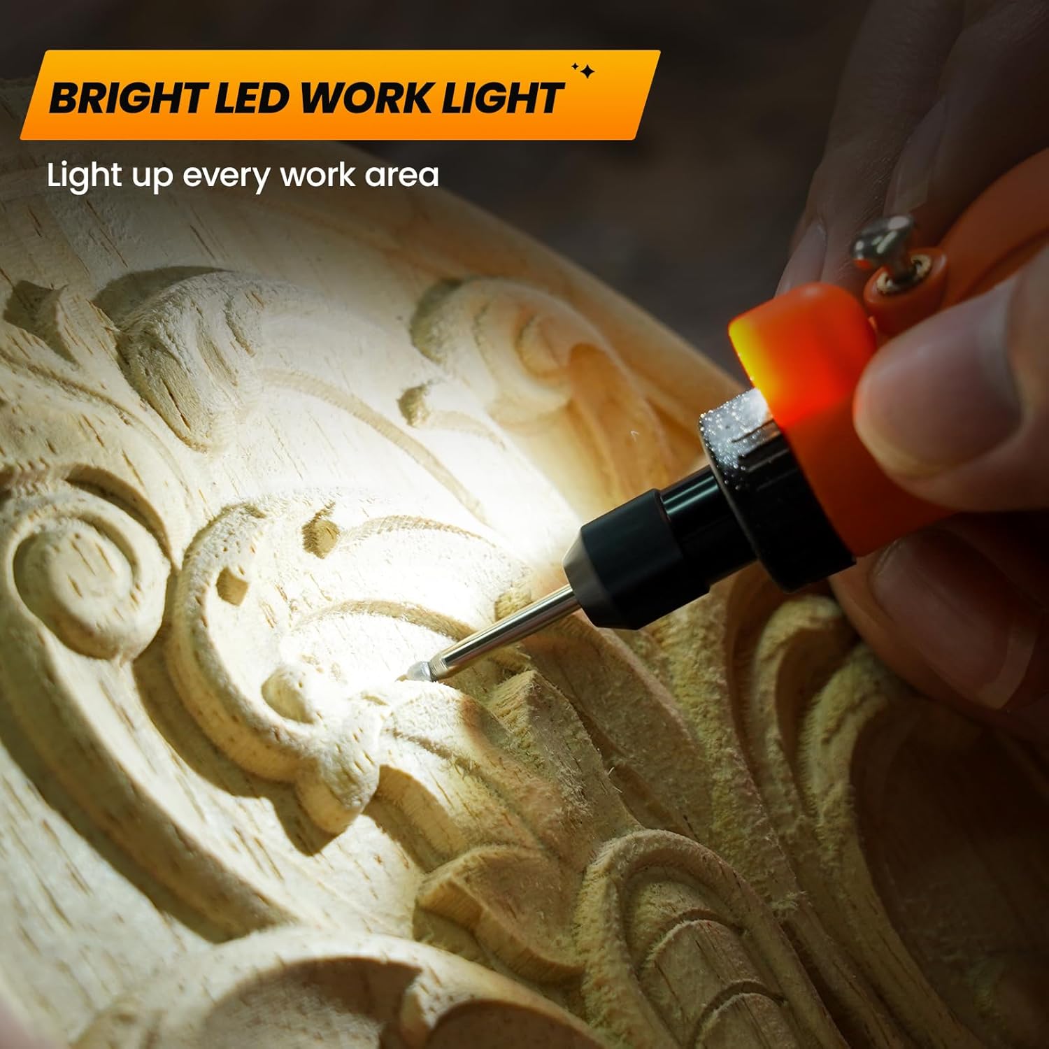 - 【Rotary Drill with LED Indicator】The upgraded small cordless rotary tool has a blind spot lighting LED design, which reduces backlight shadows and overcomes the adverse effects of dark areas on the use of the drill for resin. This provides you with a better experience and more precise work