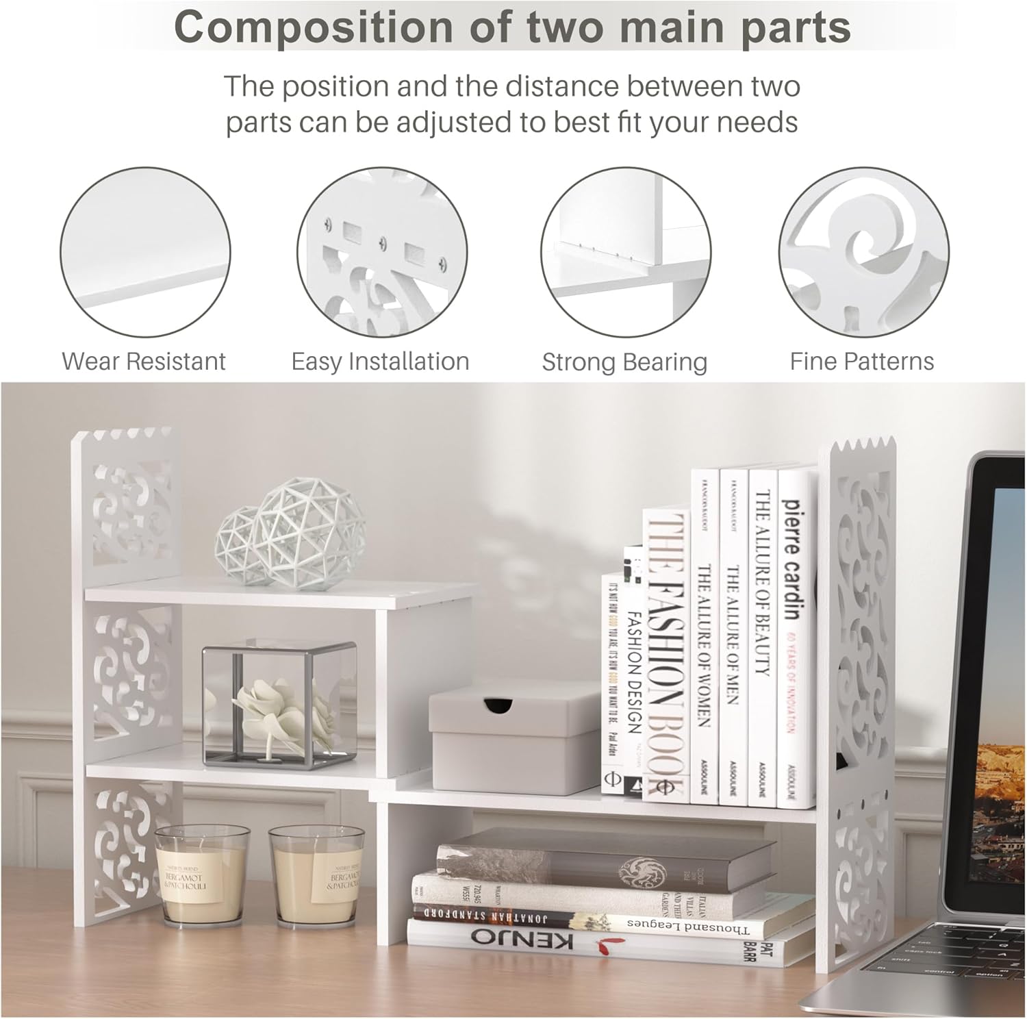 Jerry & Maggie - WPC Desktop Organizer White Office Storage Rack Shelf | Birthday Gifts - Toy - Home Decor | Free Style Rotation Display Modern Luxurious Stand Shelf (White)