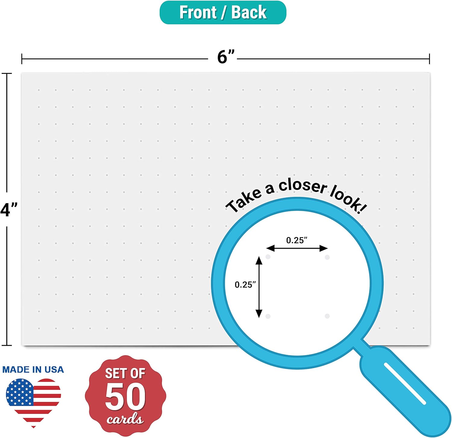 321Done Dot Grid Index Cards, Dot Pattern - Made in USA - Large 4x6 (Set of 50) Dot Bullet 0.25 Double-Sided Planner Journal, Planning Graph Ruled Thick Heavy Duty Cardstock, 1/4 inch, White