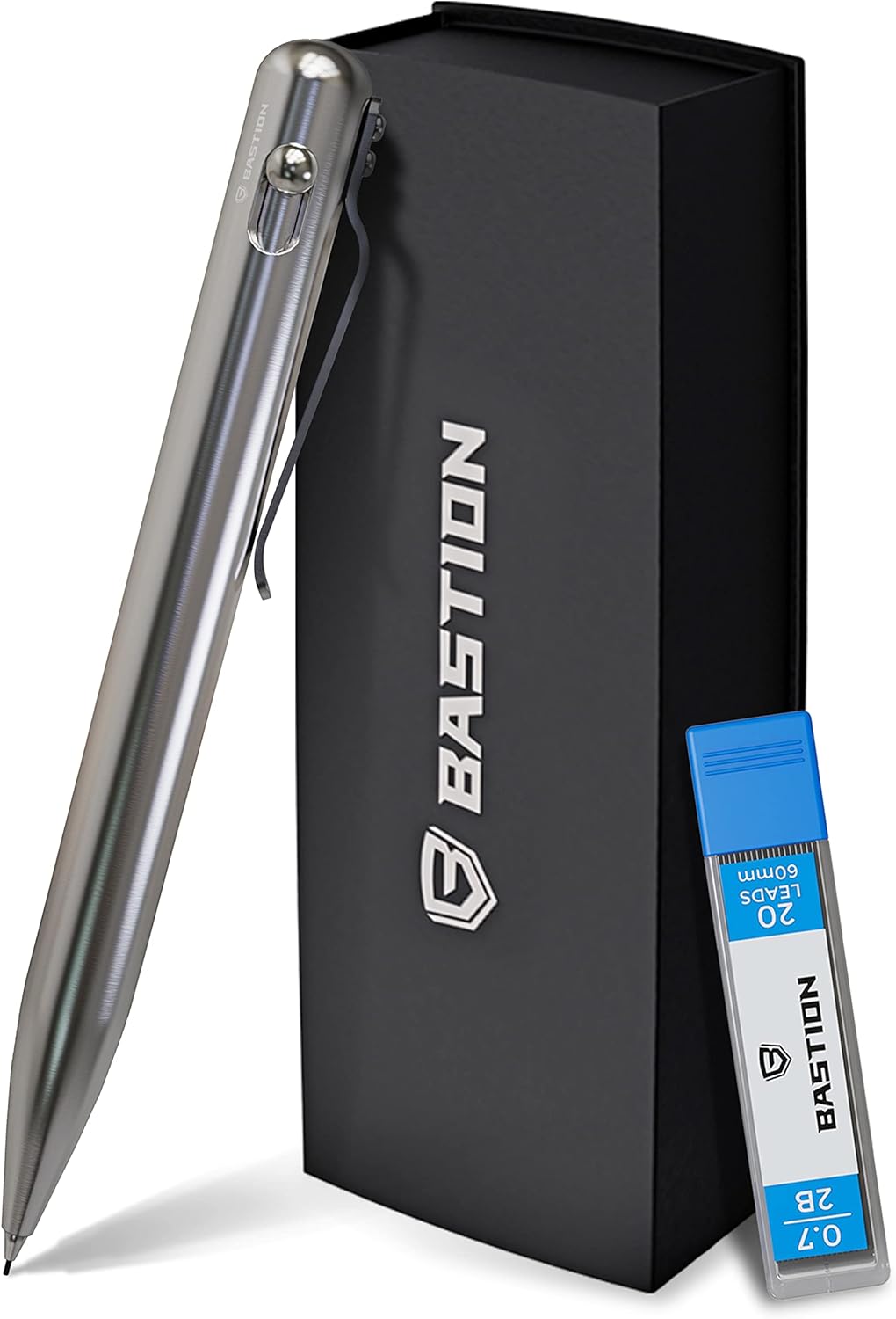 BASTION® Luxury Mechanical Pencil, Professional Medium Point Pencil for Birthday Gift includes 20 x 0.77mm Lead Refills - Stainless Steel