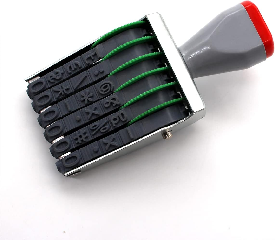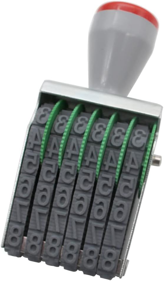 - Traditional 6 digit Number Stamps, Material : Metal, Rubber, Plastic; Size:Length :100 mm/3.93 in, Width:40 mm/1.57 in,High25 mm/0.98 in; Character : Width:7 mm /0.27 in,Height:10 mm/0.39 in; Color : Gray black; Weight: 60 g; Package Content : 1 X Numbering Stamp Without ink,Requires a separate ink pad
