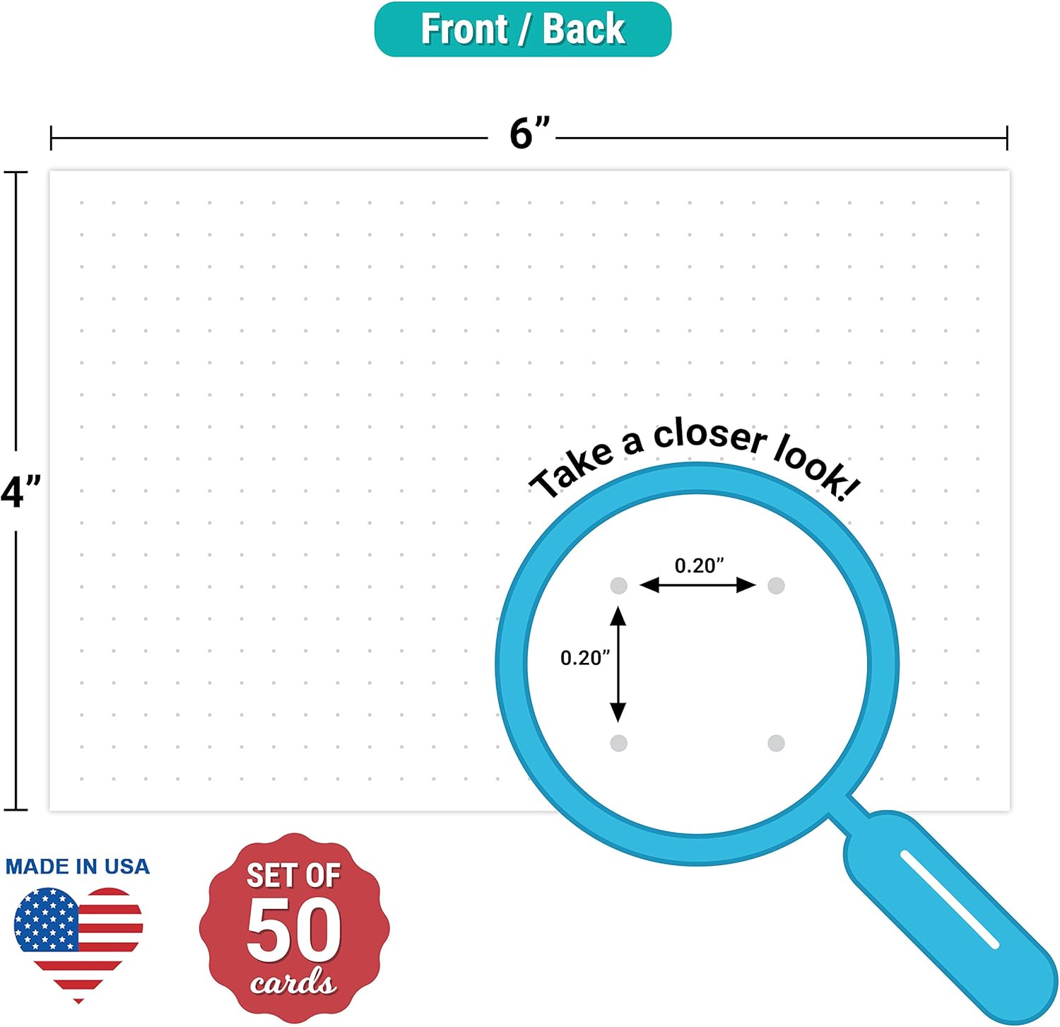 - DOUBLE-SIDED DOTS : (50) 4x6 index cards with a dotted grid pattern on both sides (0.2" spacing, which equals 5 dot grids per inch).