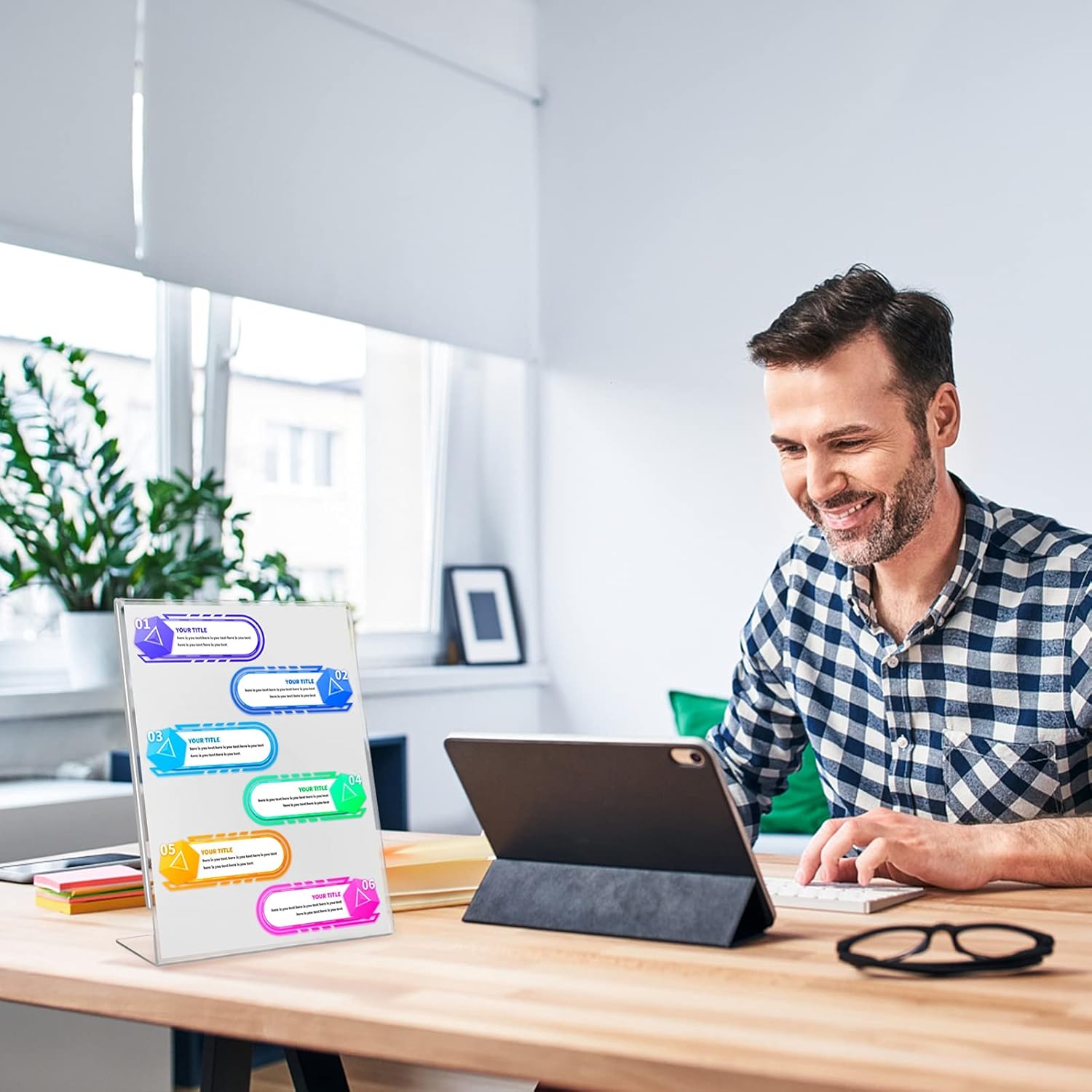 - Stable Slant Back: The acrylic picture frame has a large base, which is very stable on the table. The vertical slant back design can effectively make people clear at a glance. The sign rack is 8.5x11, the perfect size that matches most papers
