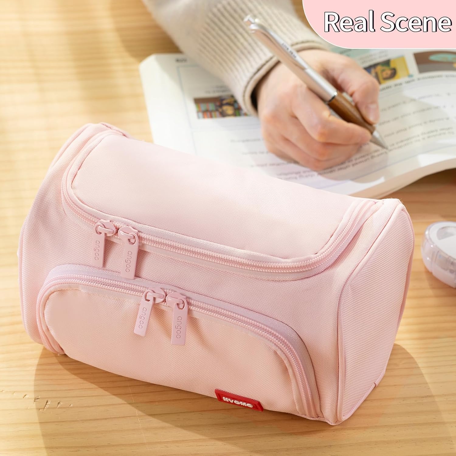 - 【Unique Design】Opens sideways (for easy-view and accessed) or from the top. Easy to carry, hand-held band. The Zipper grid pocket on top can storage triangle ruler, refills; big inner pocket can classify calculator,small pockets on both sides can keep small notes, sticky tape erasers; back zipper pocket can hold sharp objects.