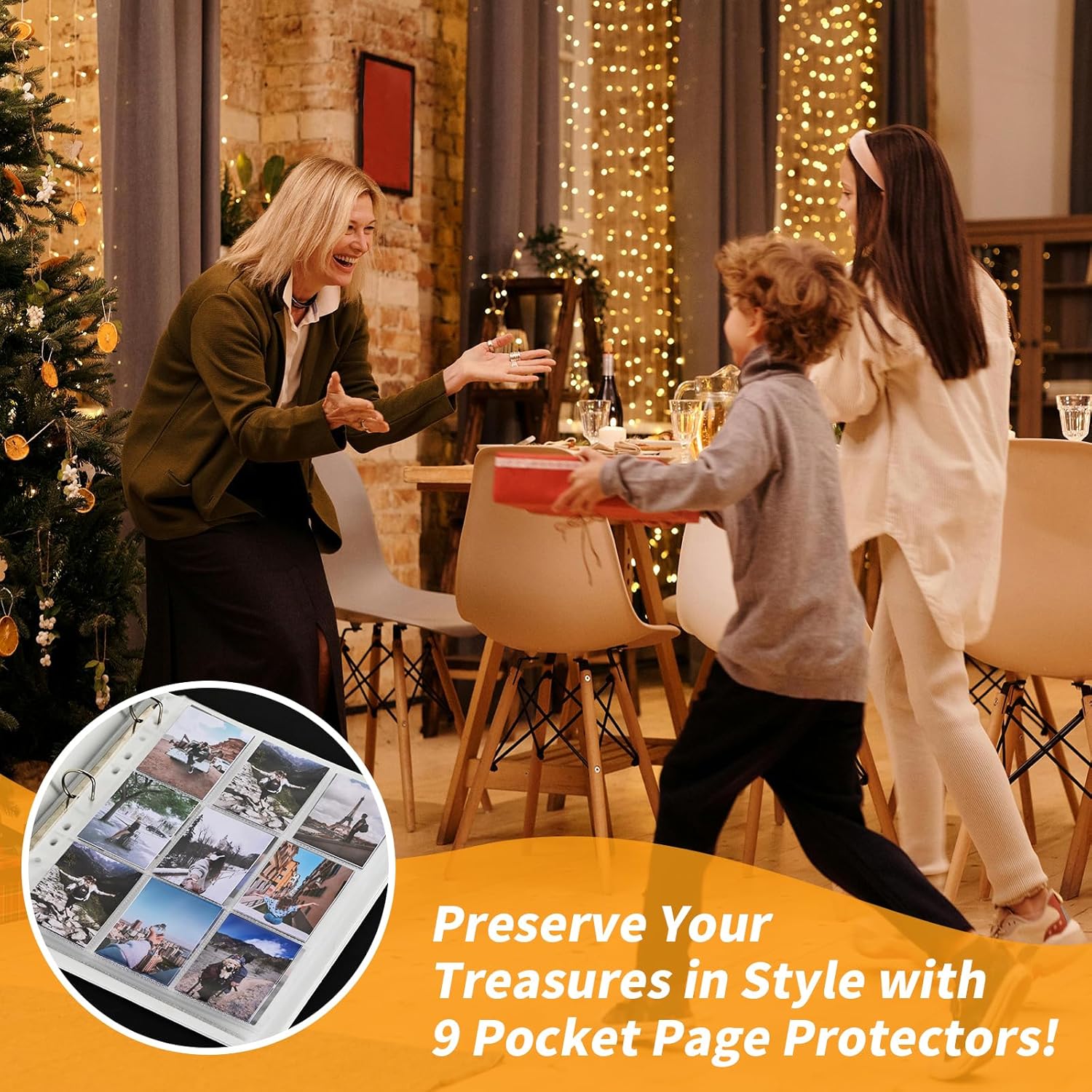 - 【DOUBLE-SIDED DISPLAY】: 9 pockets per page trading card sleeve for double-sided display, 9 pocket trading card pages can hold 18 cards, 400page, Holds 7200 Cards , Dimensions: 3.54*2.75 inches, each pocket can hold up to 2 1/2 x 3 1/2 cards.You can use a picture showing cards being inserted into both sides.