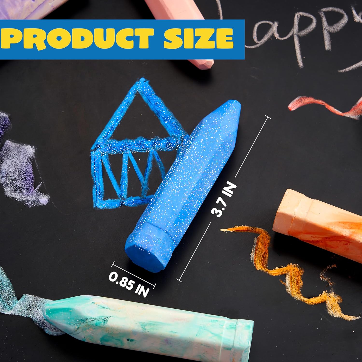 - Large Selection of Colors: Includes 12 tie dye, 12 glitter, and 12 neon color chalks for endless creative possibilities.