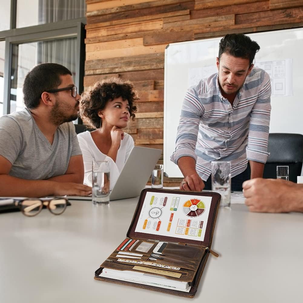- Vintage Style Leather Portfolio: padfolio very suitable for all business elite. And the zippered padfolio notebook binder is handmade by experienced craftsmen. Elegant never goes out of style handmade charm.