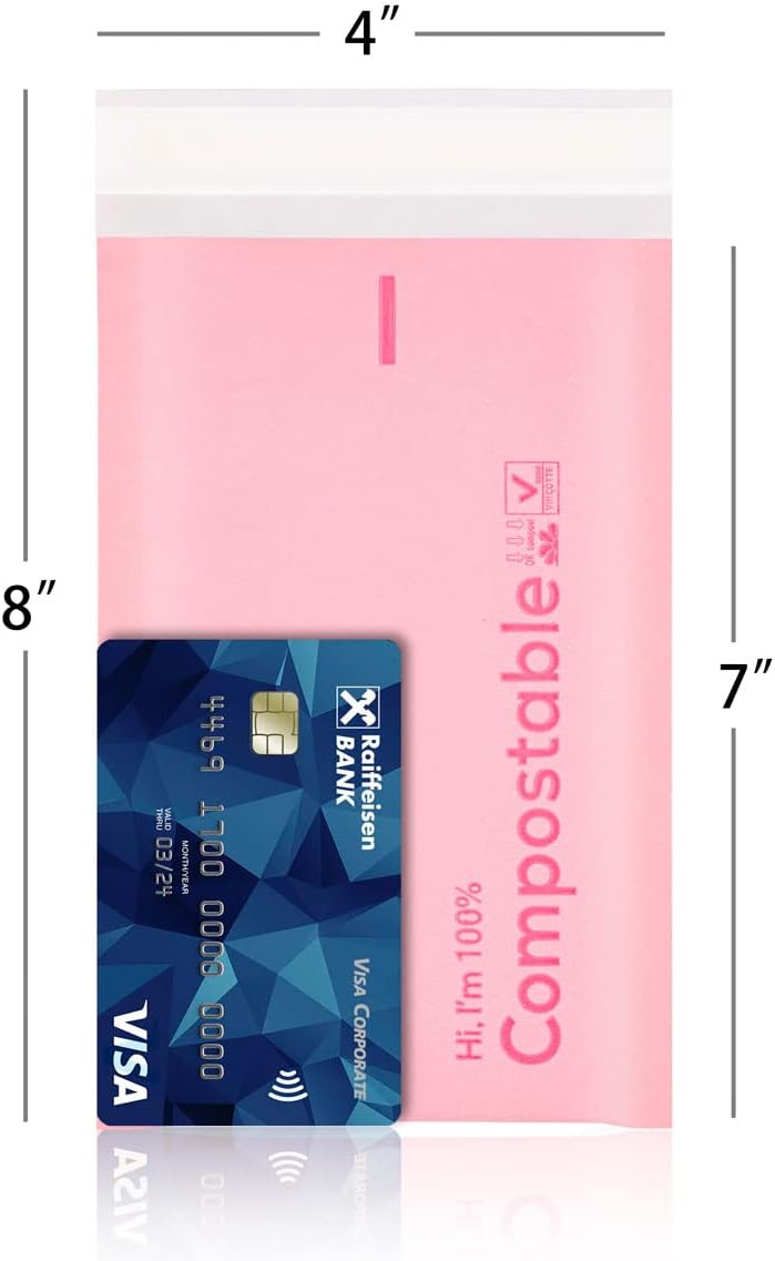 4x8 100% Biodegradable Bubble Mailers,25 Count Pink #000 Compostable Padded Packaging Wrap Envelopes Pouches Eco Friendly Self Seal Bags