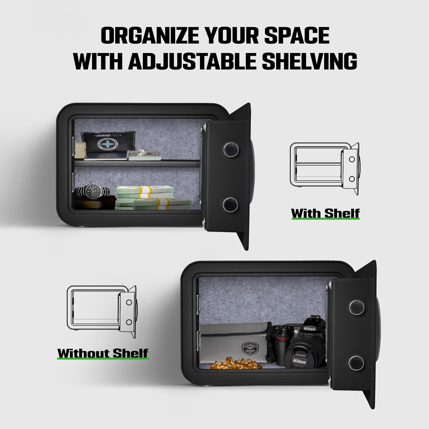 - ăRemovable PartitionăThe digital small safe Box features a removable shelf for the easy organization of valuables inside, lined with anti-moisture fabric to protect jewelry, and more from scratching