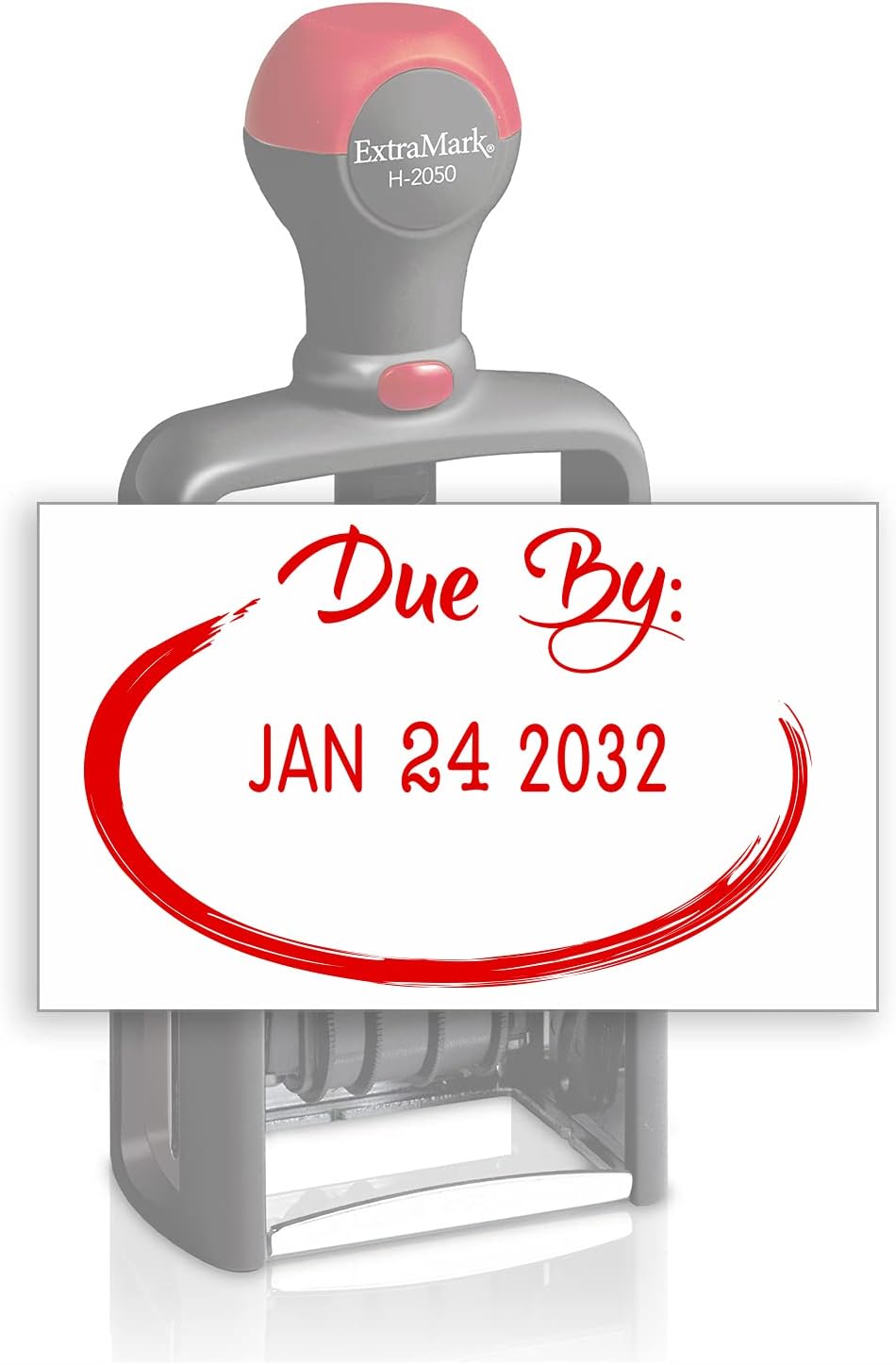 Heavy Duty Style Office Date Stamp with Due by: - Self Inking Dater - Style C - Red Ink Color