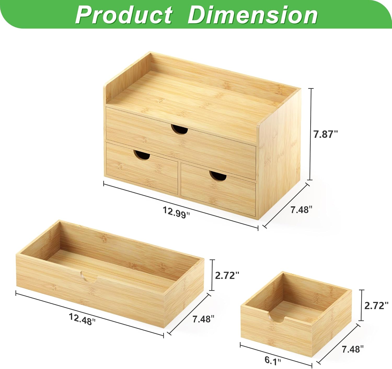- 【Item Size】7.48” x 12.99” x 7.87”(D * W * H). This bamboo desktop organizer with drawers can not only keep your desk clean, but also be used as a decoration to make your work environment look more comfortable